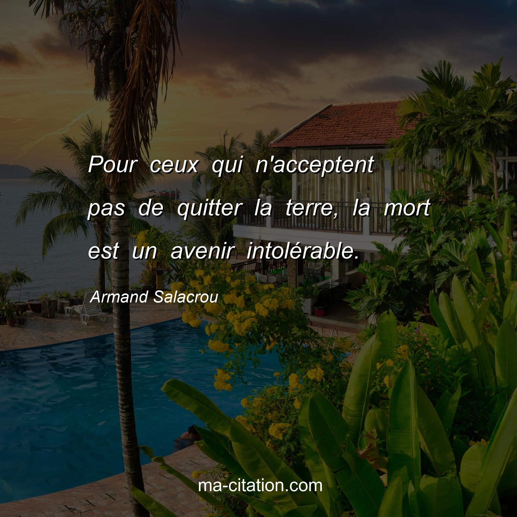Citation sur la vie d'Armand Salacrou :Pour ceux qui n'acceptent pas de quitter la terre, la mort est un avenir intolérable.