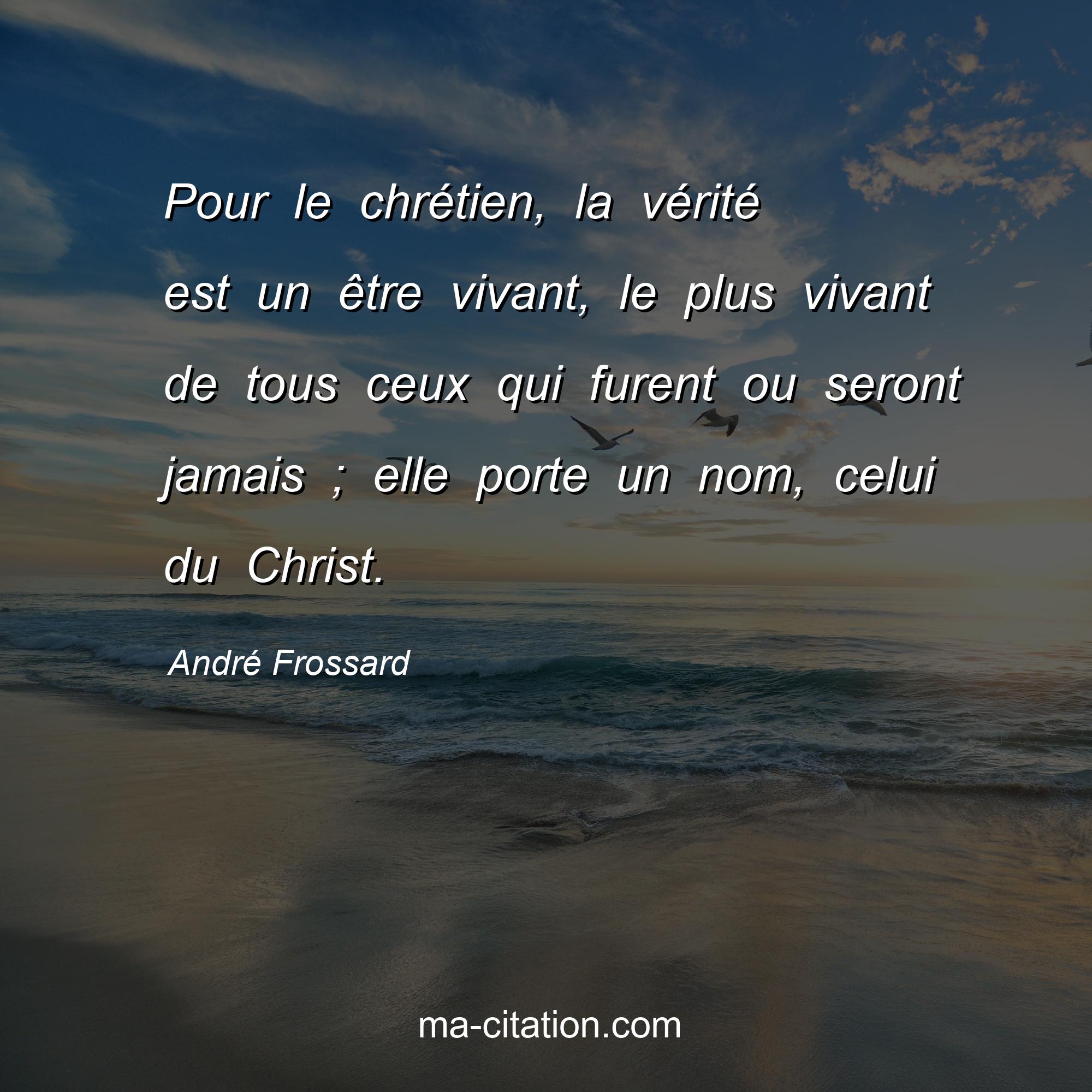 Citation sur la vie d'André Frossard :Pour le chrétien, la vérité est un être vivant, le plus vivant de tous ceux qui furent ou seront jamais ; elle porte un nom, celui du Christ.