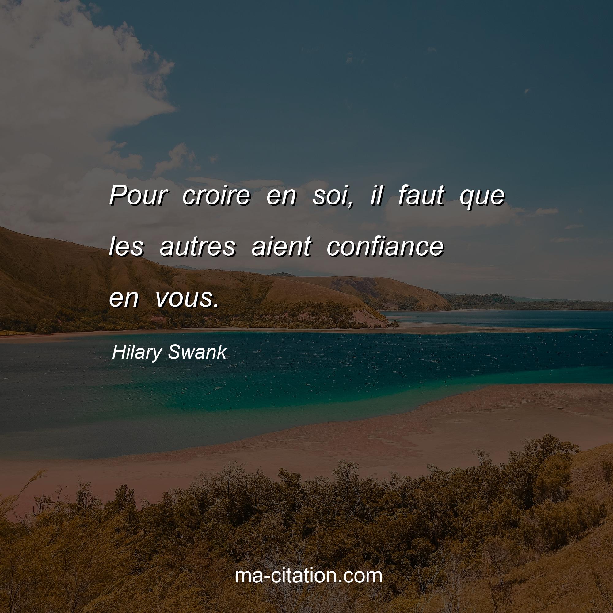 Citation sur la vie de Hilary Swank :Pour croire en soi, il faut que les autres aient confiance en vous.