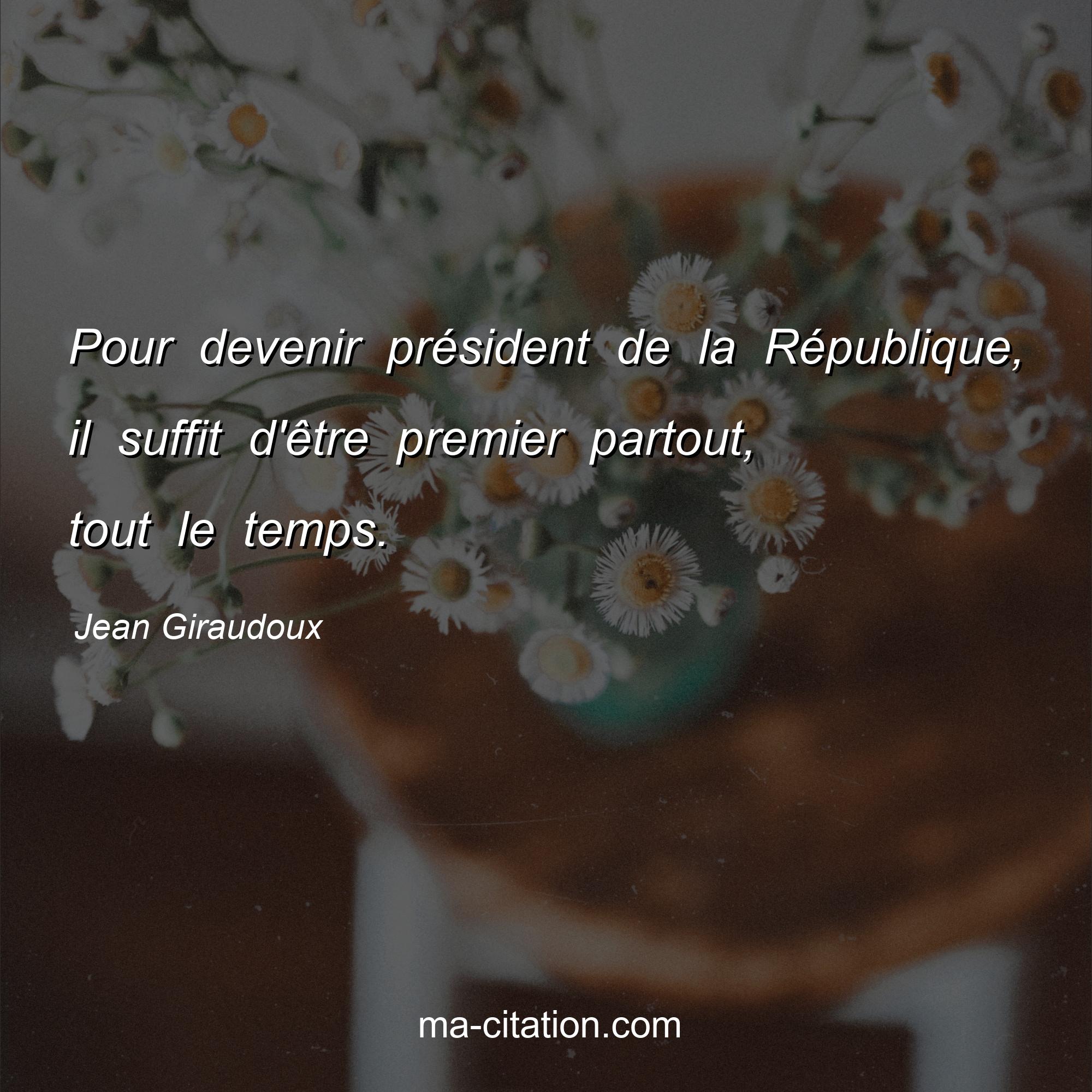 Citation sur la vie de Jean Giraudoux :Pour devenir président de la République, il suffit d'être premier partout, tout le temps.