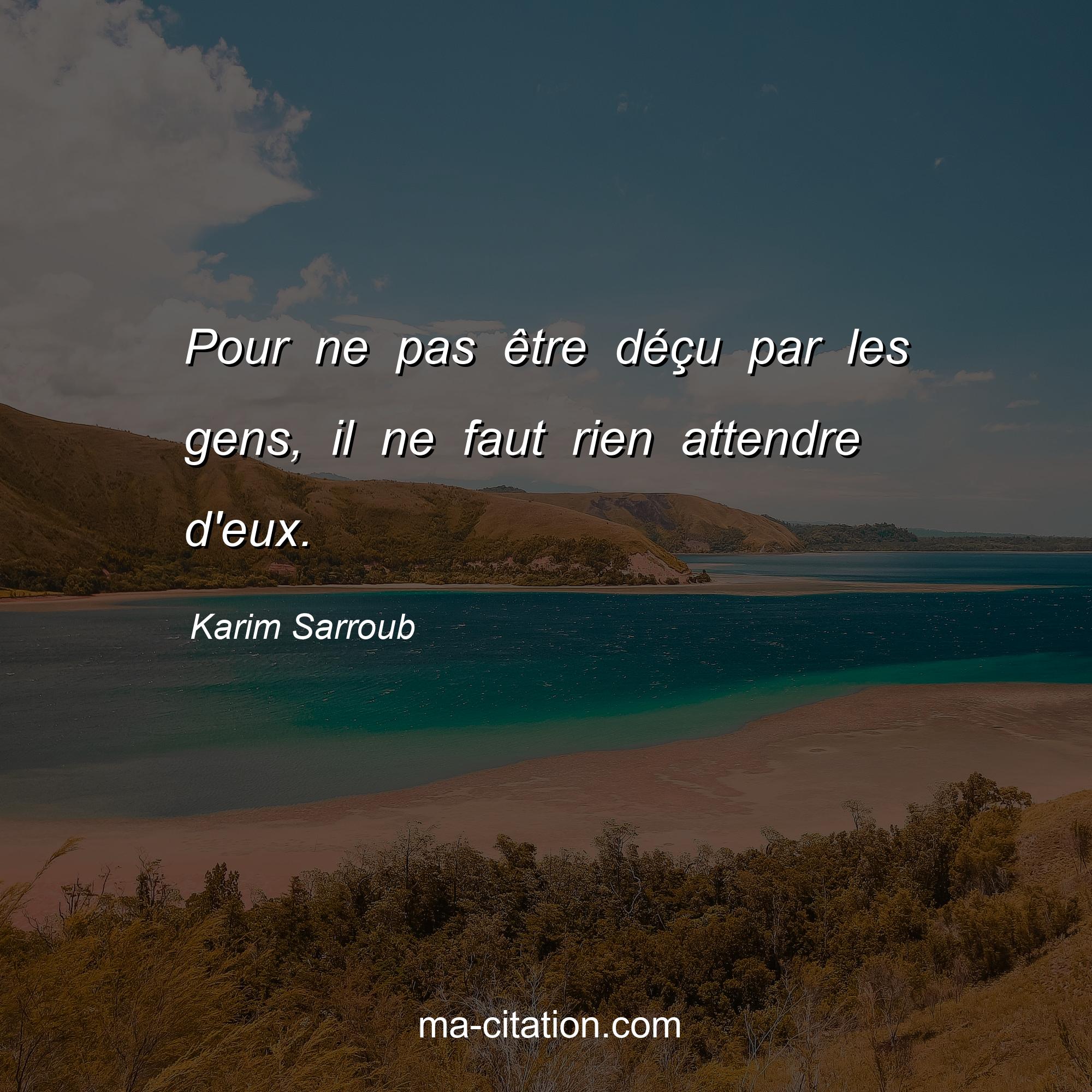 Citation sur la vie de Karim Sarroub :Pour ne pas être déçu par les gens, il ne faut rien attendre d'eux.