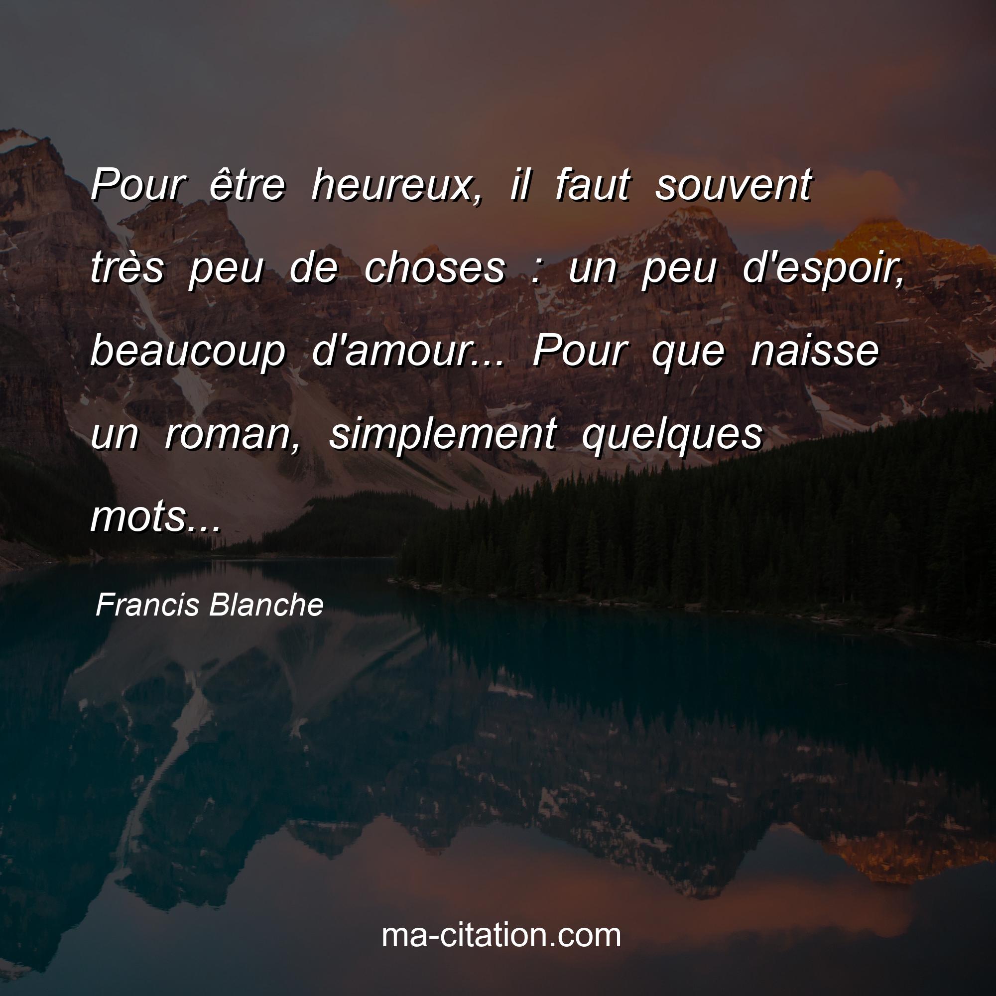 Citation sur la vie de Francis Blanche :Pour être heureux, il faut souvent très peu de choses : un peu d'espoir, beaucoup d'amour... Pour que naisse un roman, simplement quelques mots...
