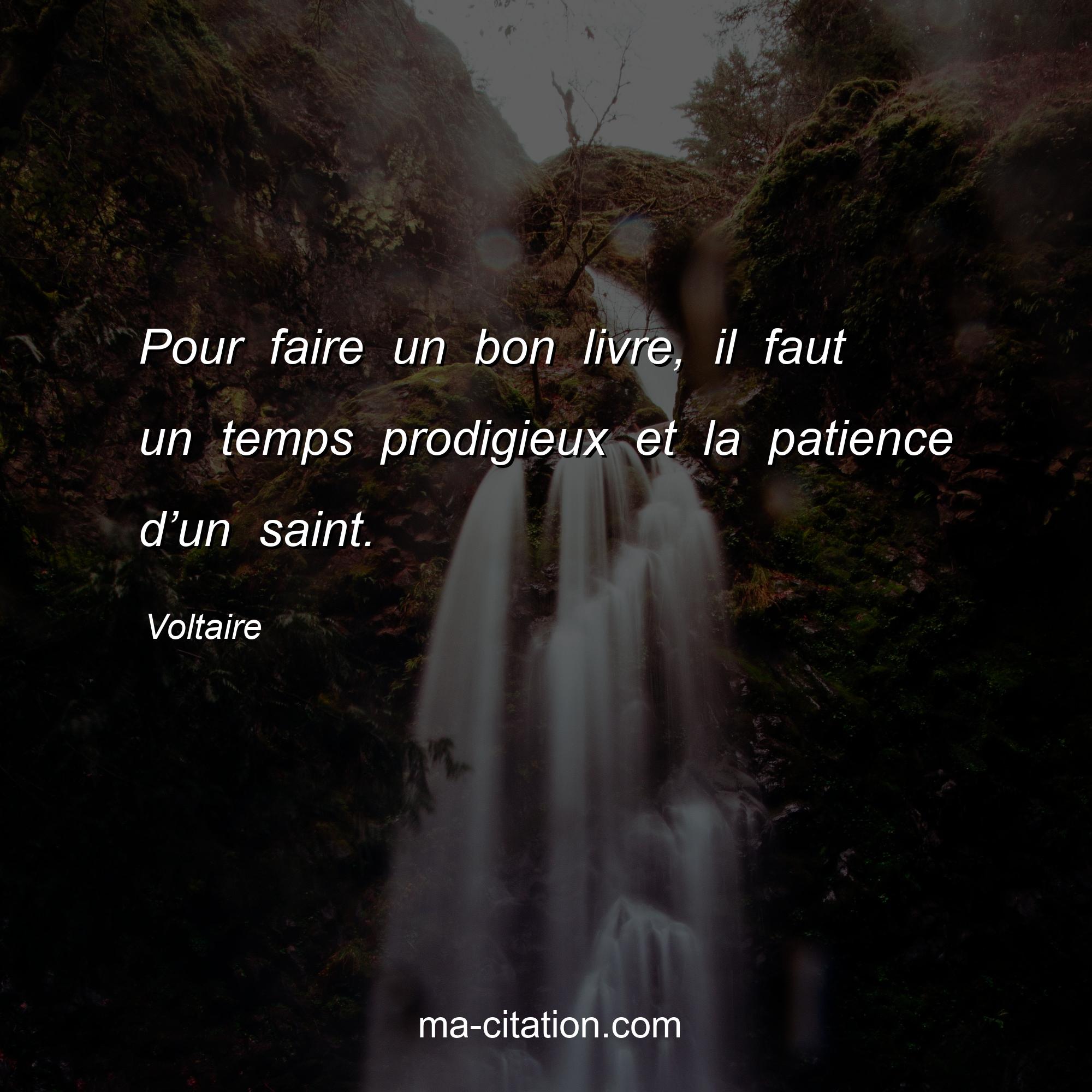 Citation sur la vie de Voltaire :Pour faire un bon livre, il faut un temps prodigieux et la patience d’un saint.