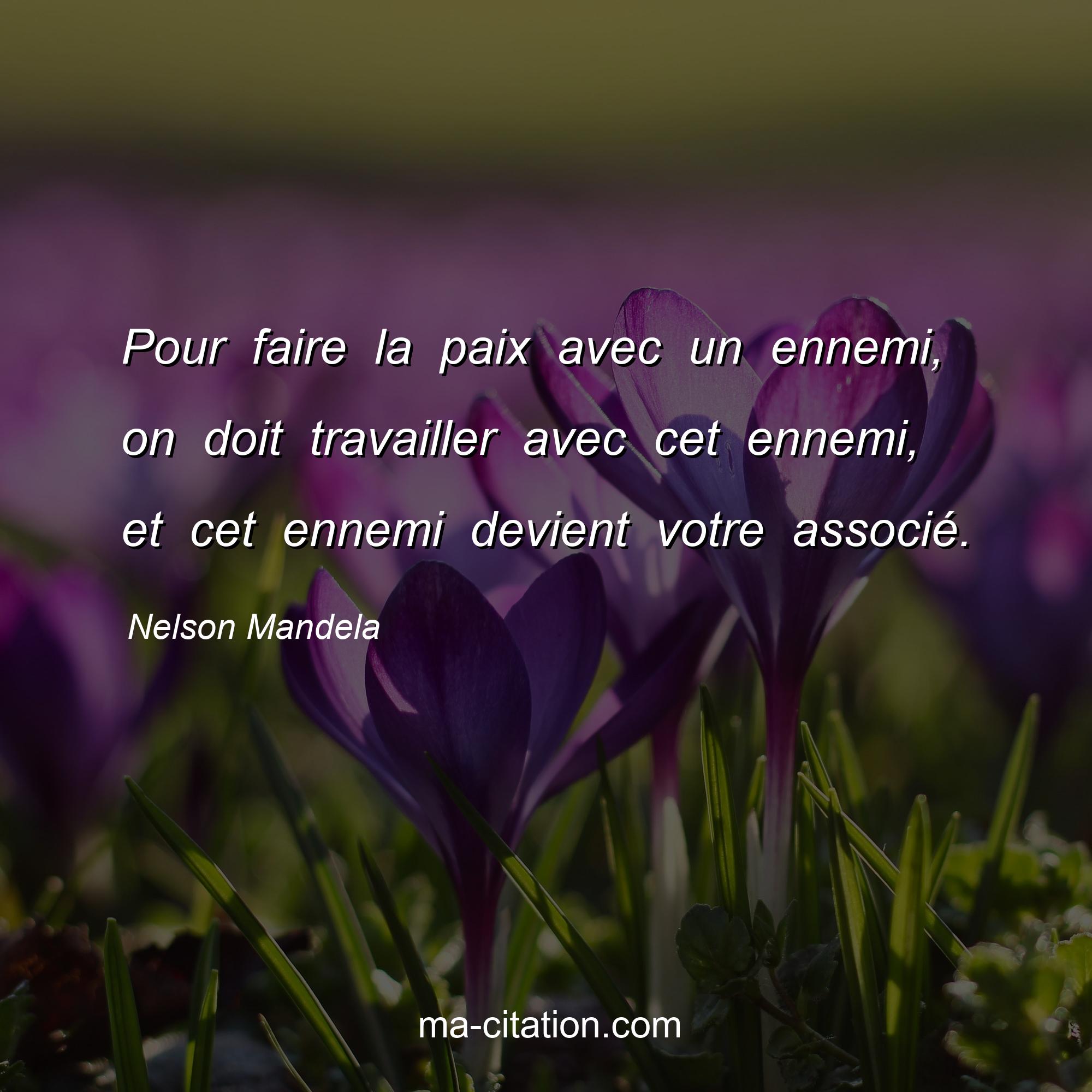 Citation sur la vie de Nelson Mandela :Pour faire la paix avec un ennemi, on doit travailler avec cet ennemi, et cet ennemi devient votre associé.