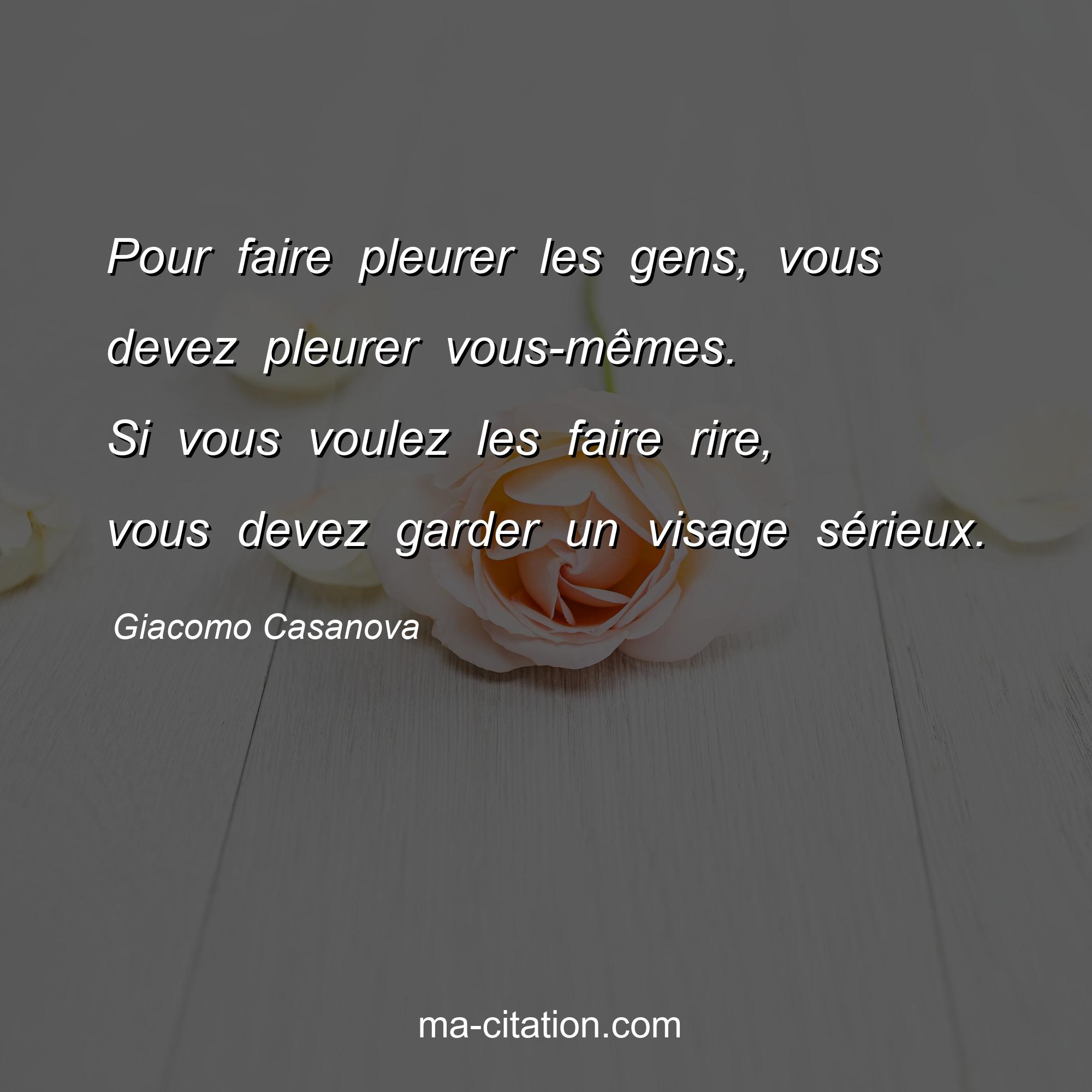 Citation sur la vie de Giacomo Casanova :Pour faire pleurer les gens, vous devez pleurer vous-mêmes. Si vous voulez les faire rire, vous devez garder un visage sérieux.