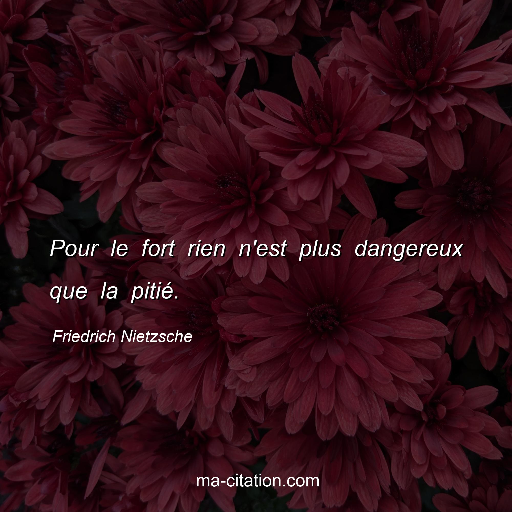 Citation sur la vie de Friedrich Nietzsche :Pour le fort rien n'est plus dangereux que la pitié.