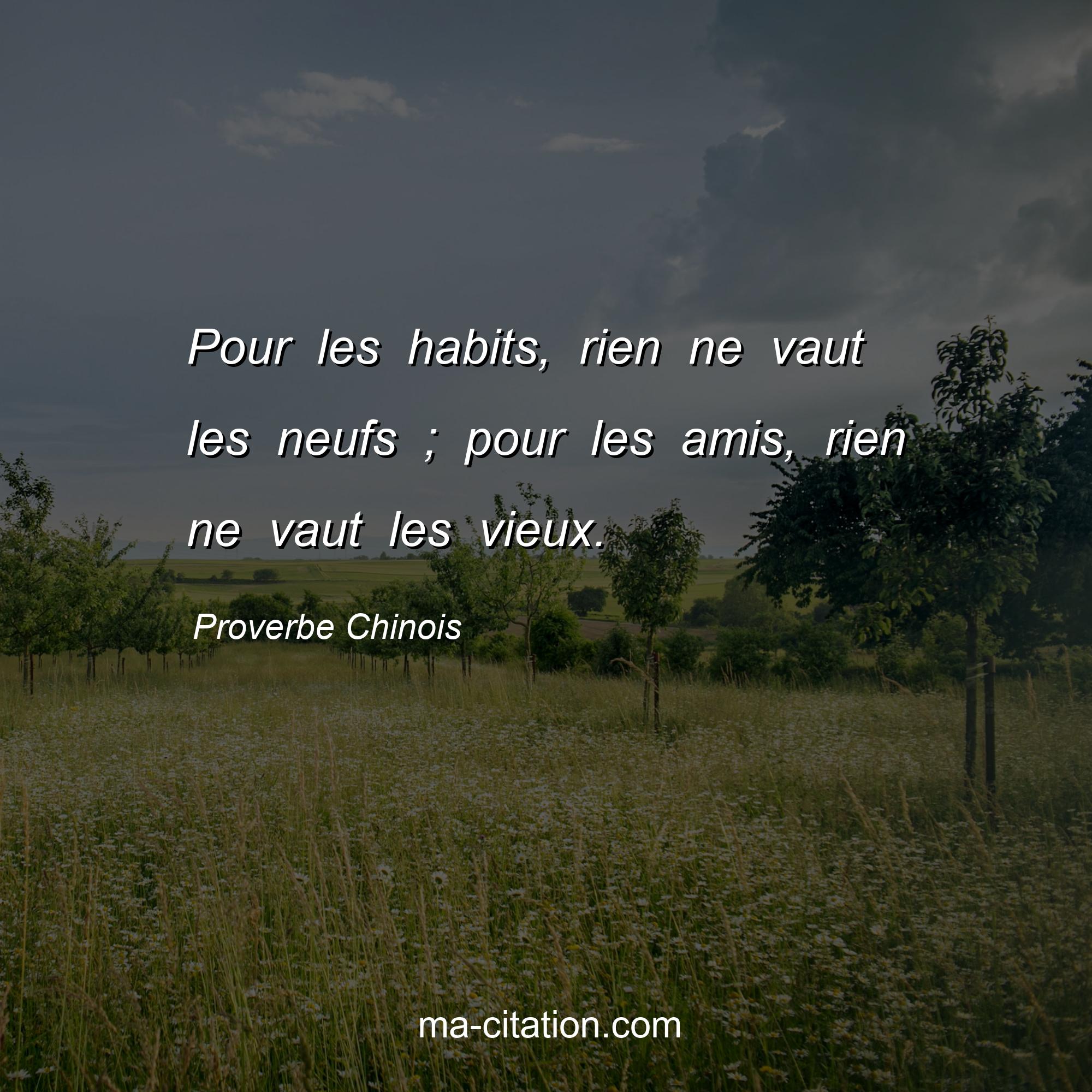Proverbe Chinois sur la vie :Pour les habits, rien ne vaut les neufs ; pour les amis, rien ne vaut les vieux.