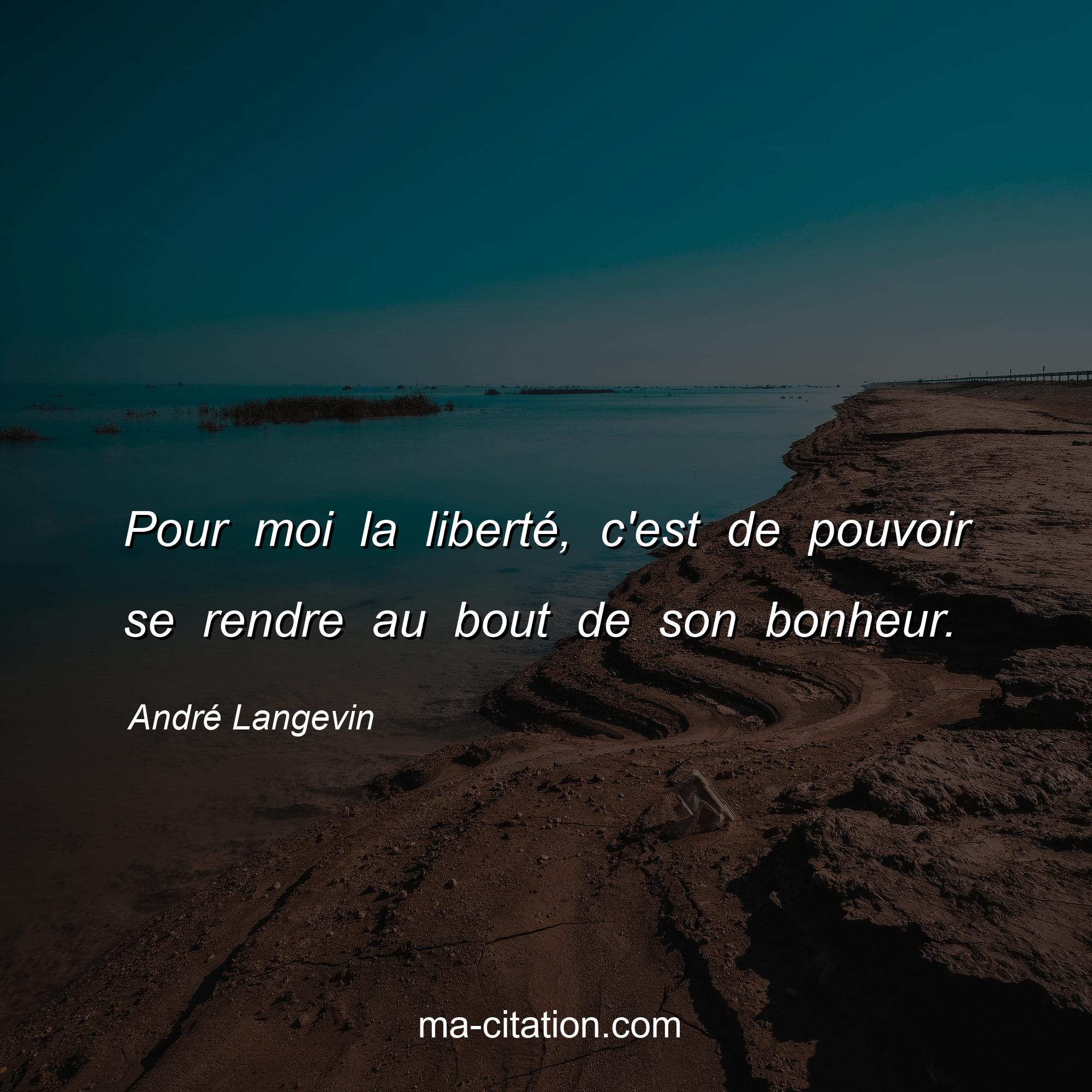 André Langevin est l'auteur de la citation sur la vie "Pour moi la liberté, c'est de pouvoir se rendre au bout de son bonheur.".