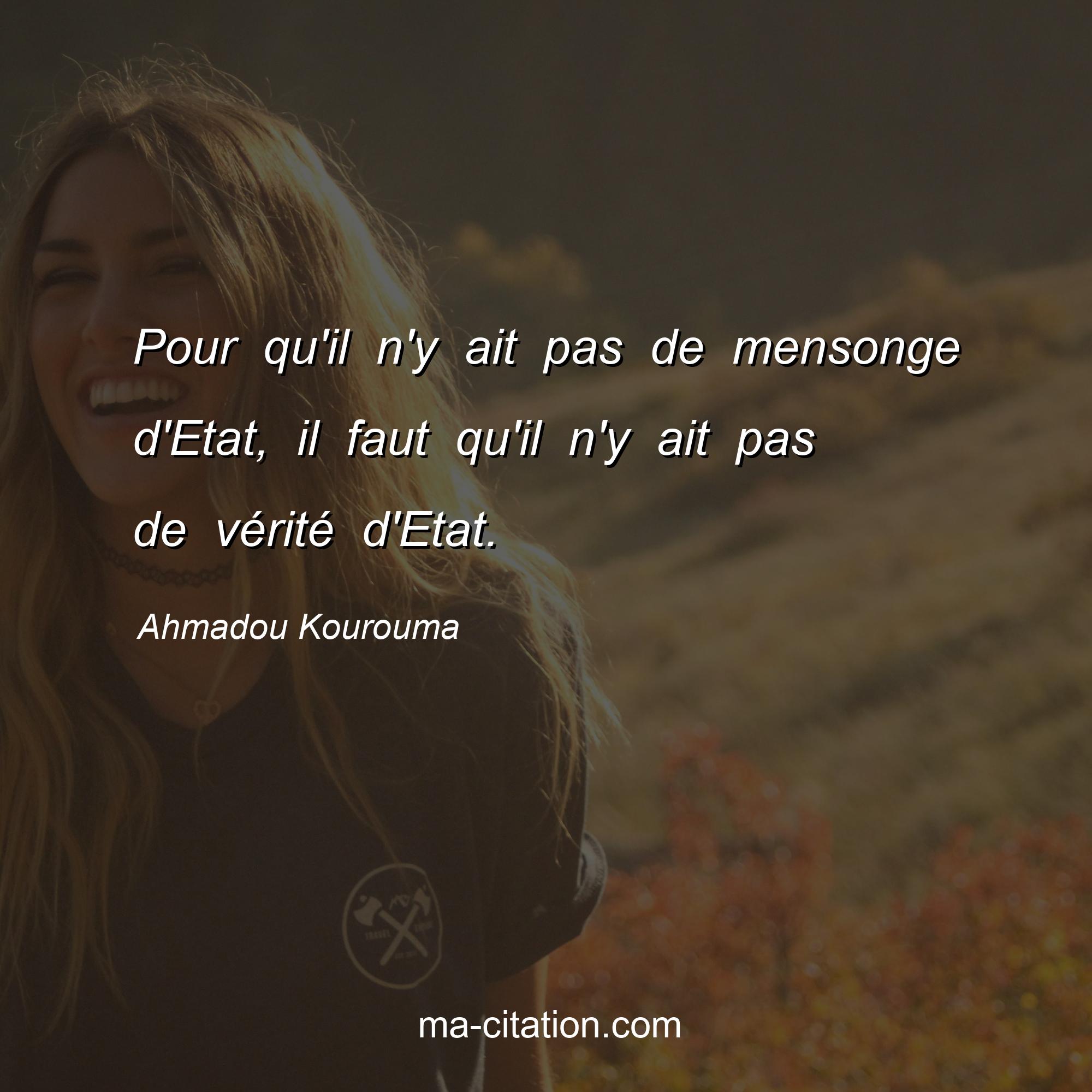 Citation sur la vie d'Ahmadou Kourouma :Pour qu'il n'y ait pas de mensonge d'Etat, il faut qu'il n'y ait pas de vérité d'Etat.