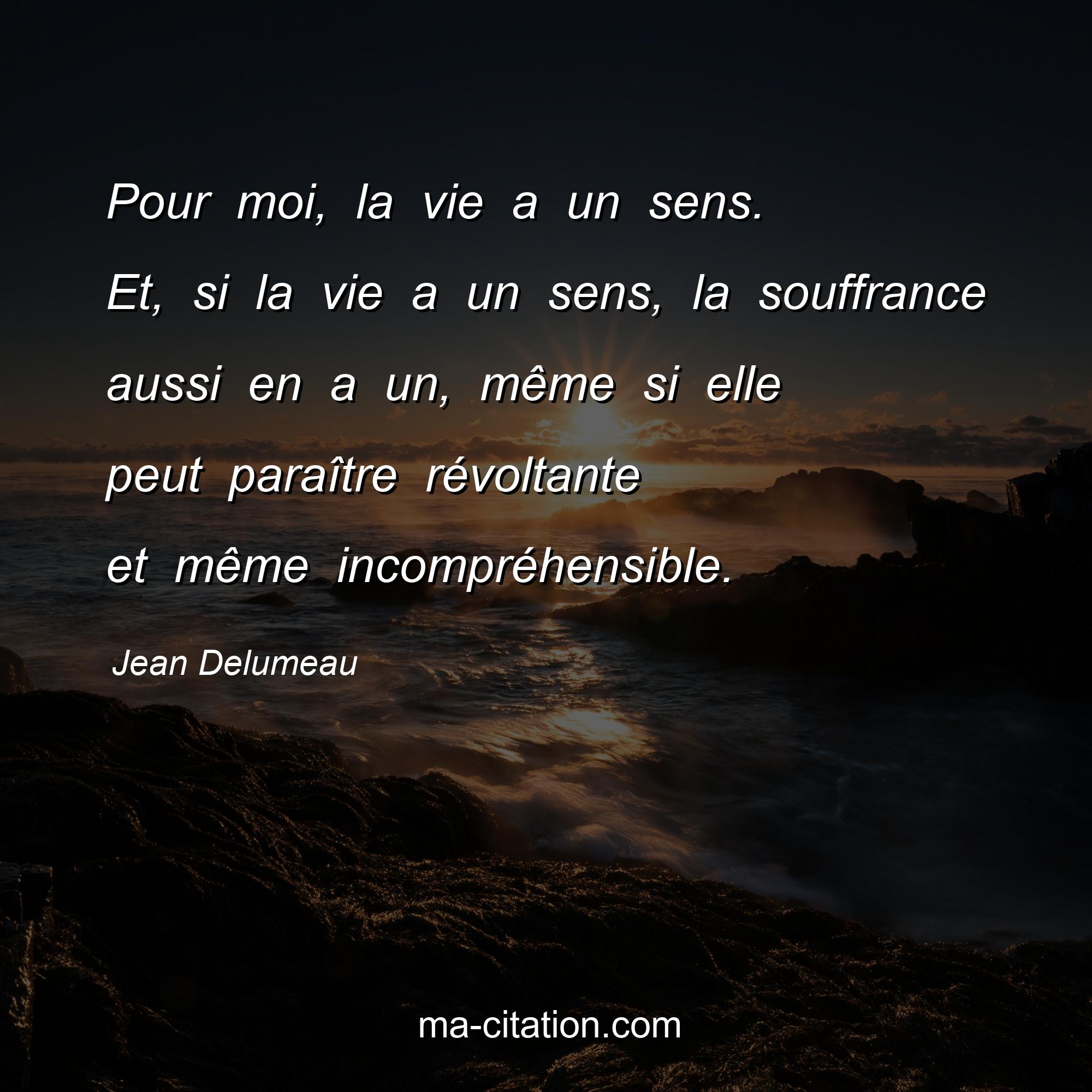 Citation sur la vie de Jean Delumeau :Pour moi, la vie a un sens. Et, si la vie a un sens, la souffrance aussi en a un, même si elle peut paraître révoltante et même incompréhensible.