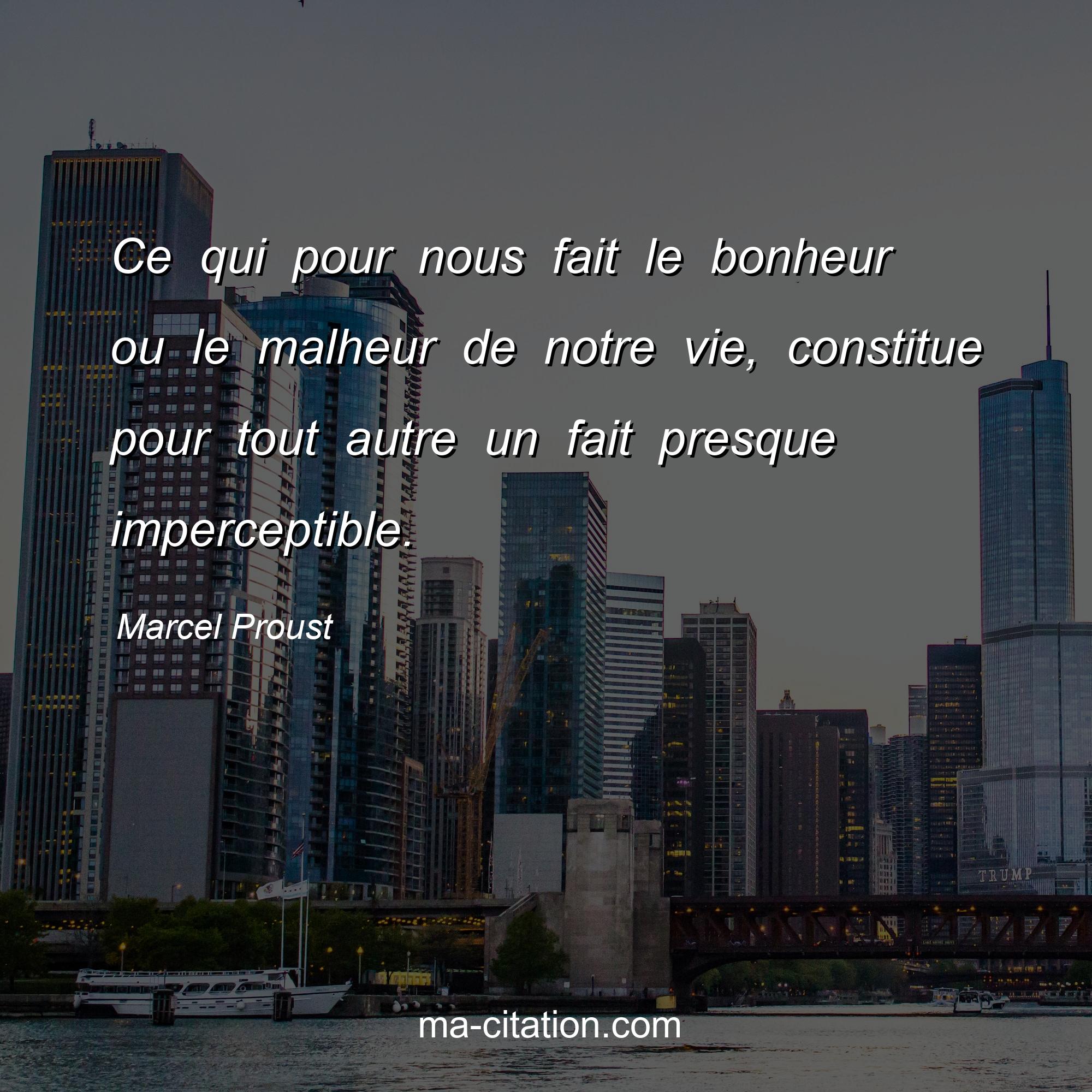 Citation sur la vie de Marcel Proust :Ce qui pour nous fait le bonheur ou le malheur de notre vie, constitue pour tout autre un fait presque imperceptible.