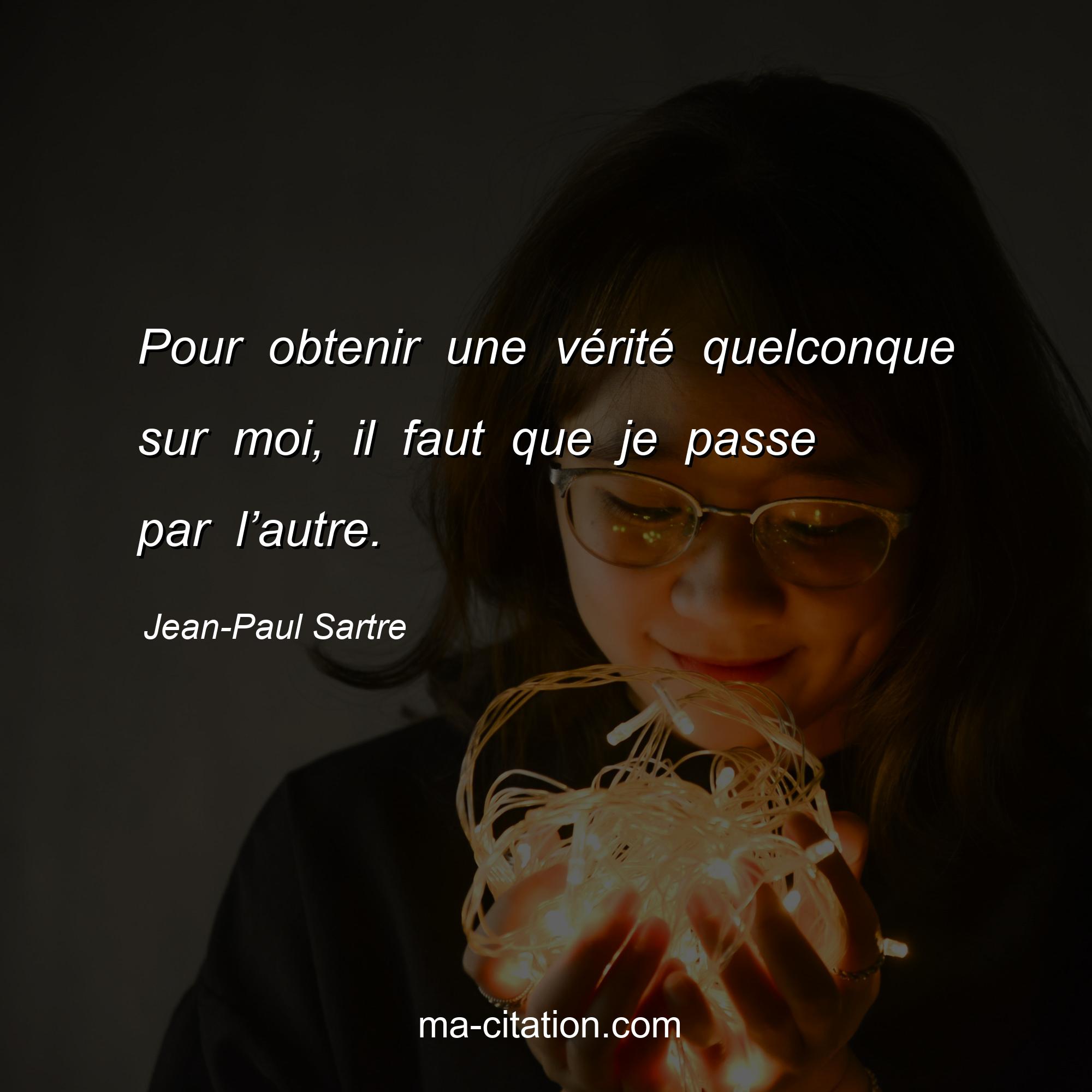 Citation sur la vie de Jean-Paul Sartre :Pour obtenir une vérité quelconque sur moi, il faut que je passe par l’autre.