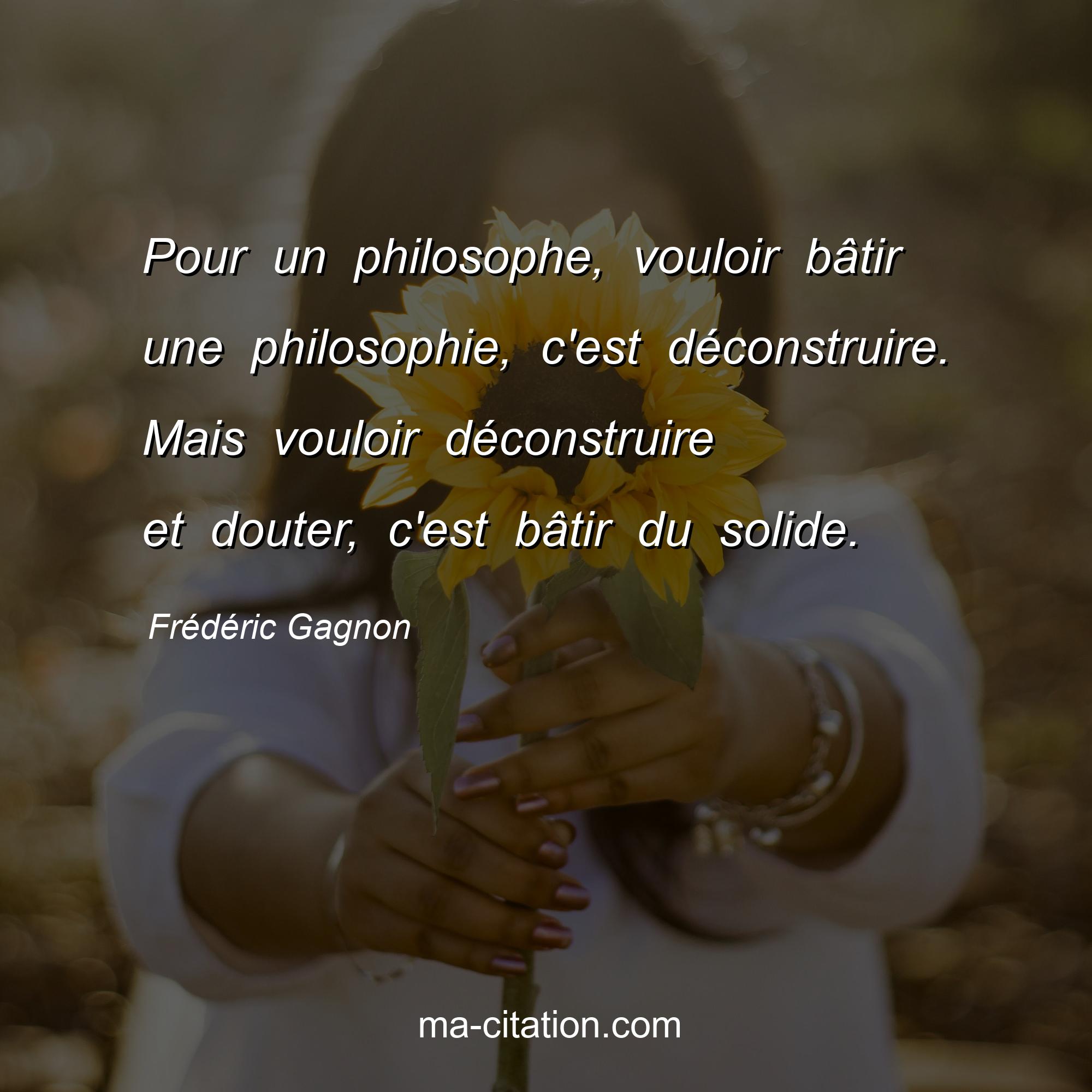 Citation sur la vie de Frédéric Gagnon :Pour un philosophe, vouloir bâtir une philosophie, c'est déconstruire. Mais vouloir déconstruire et douter, c'est bâtir du solide.