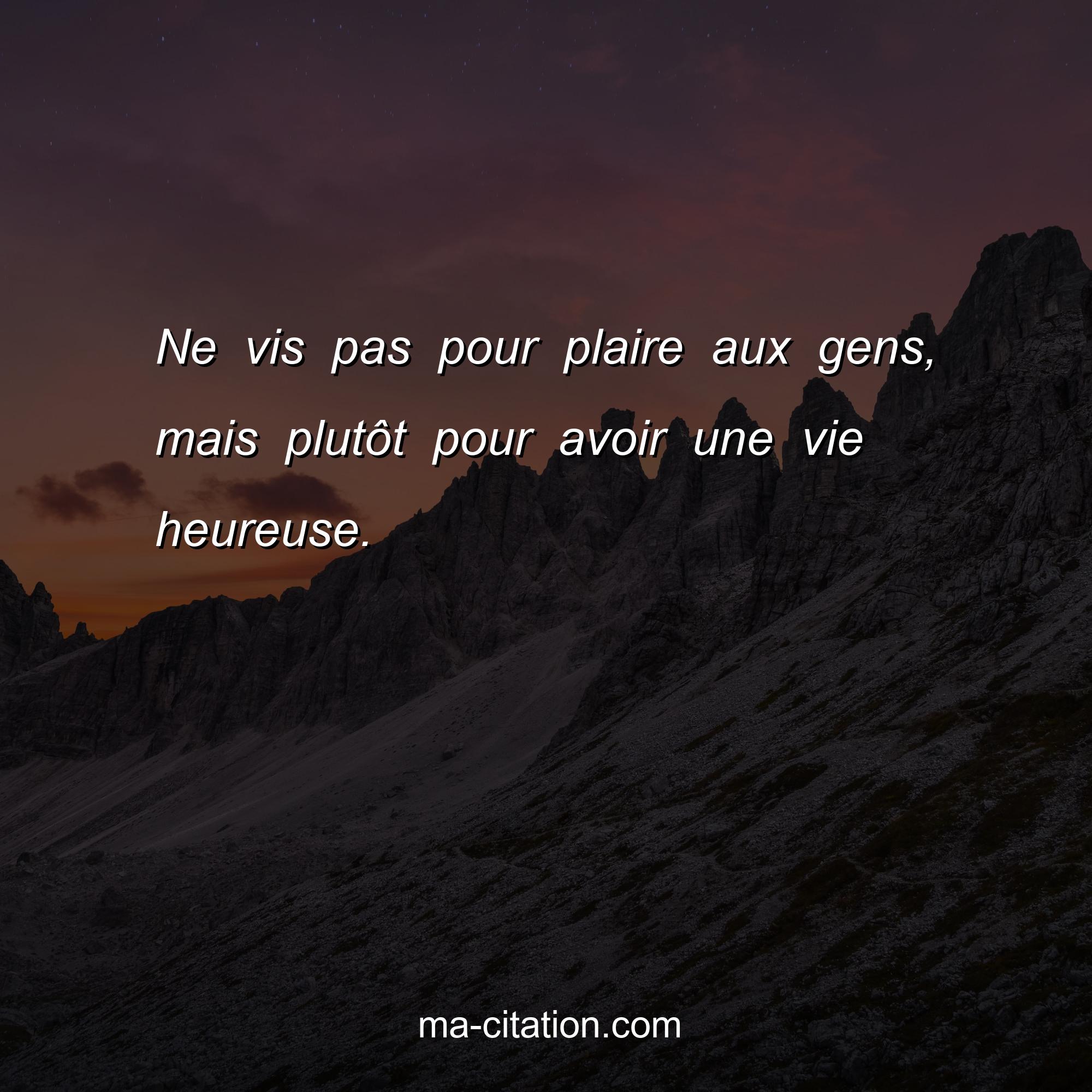 Citation sur la vie :Ne vis pas pour plaire aux gens, mais plutôt pour avoir une vie heureuse.