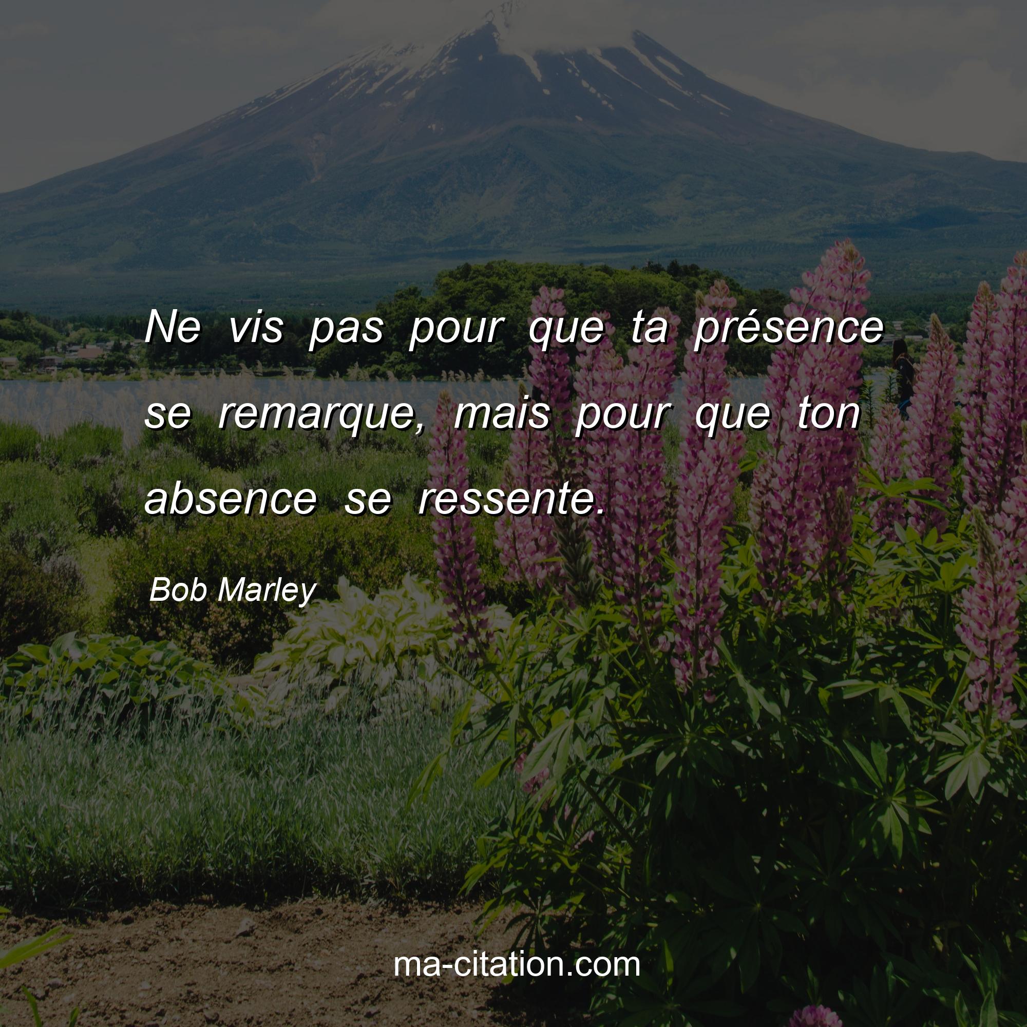 Citation sur la vie de Bob Marley :Ne vis pas pour que ta présence se remarque, mais pour que ton absence se ressente.