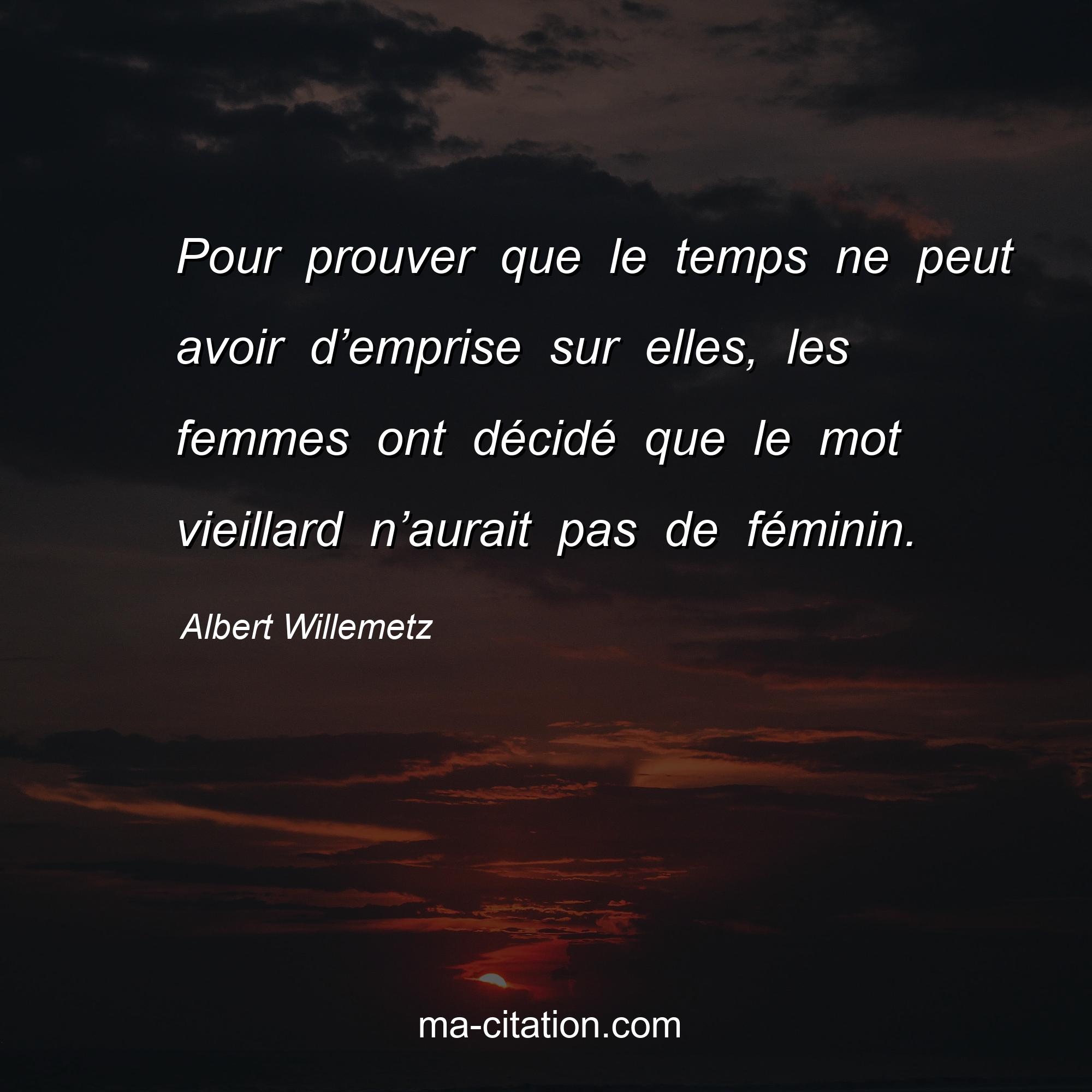 Citation sur la vie d'Albert Willemetz :Pour prouver que le temps ne peut avoir d’emprise sur elles, les femmes ont décidé que le mot vieillard n’aurait pas de féminin.