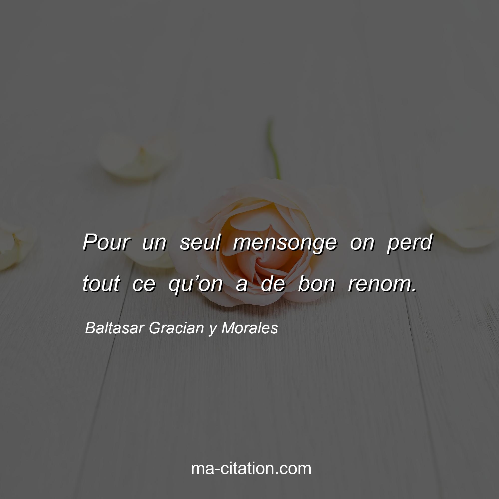Citation sur la vie de Baltasar Gracian y Morales :Pour un seul mensonge on perd tout ce qu’on a de bon renom.
