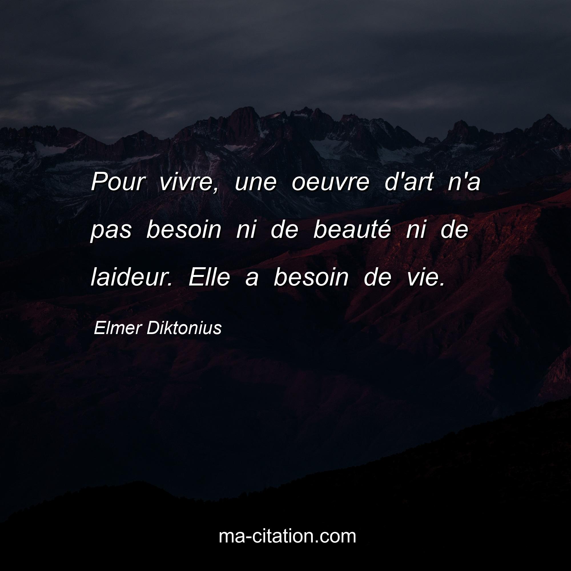 Citation sur la vie d'Elmer Diktonius :Pour vivre, une oeuvre d'art n'a pas besoin ni de beauté ni de laideur. Elle a besoin de vie.