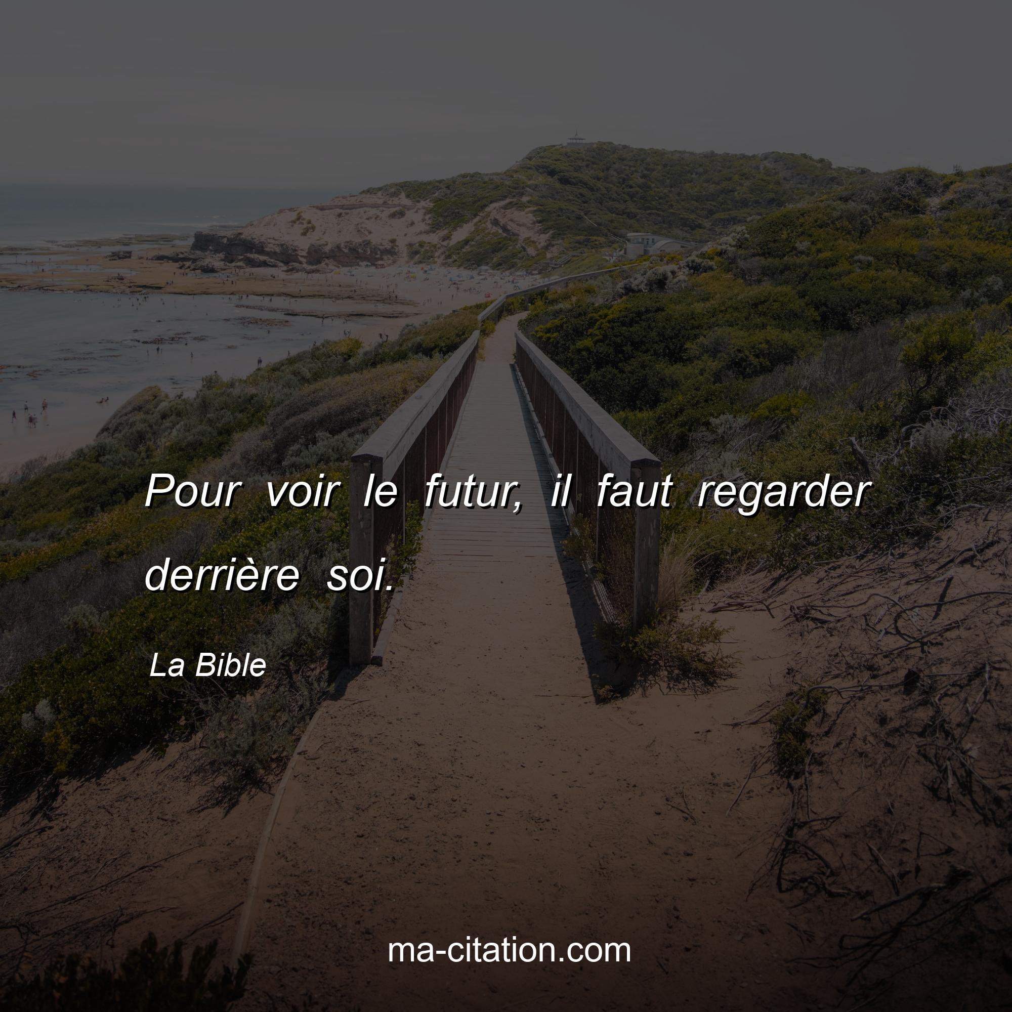 Citation sur la vie de La Bible :Pour voir le futur, il faut regarder derrière soi.
