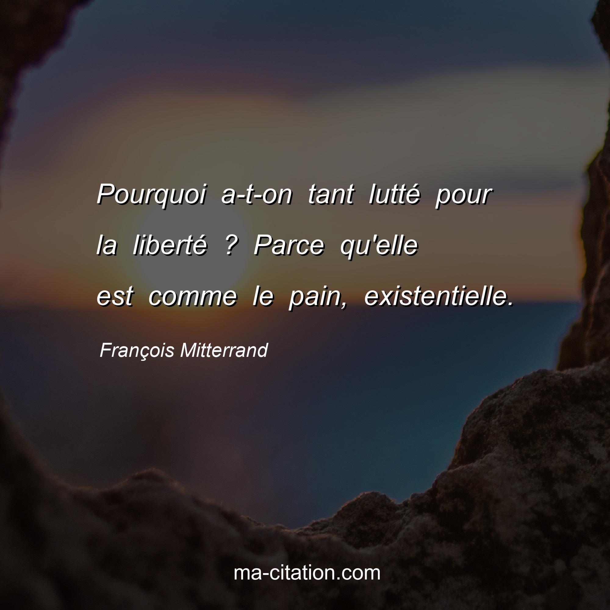 Citation sur la vie de François Mitterrand :Pourquoi a-t-on tant lutté pour la liberté ? Parce qu'elle est comme le pain, existentielle.