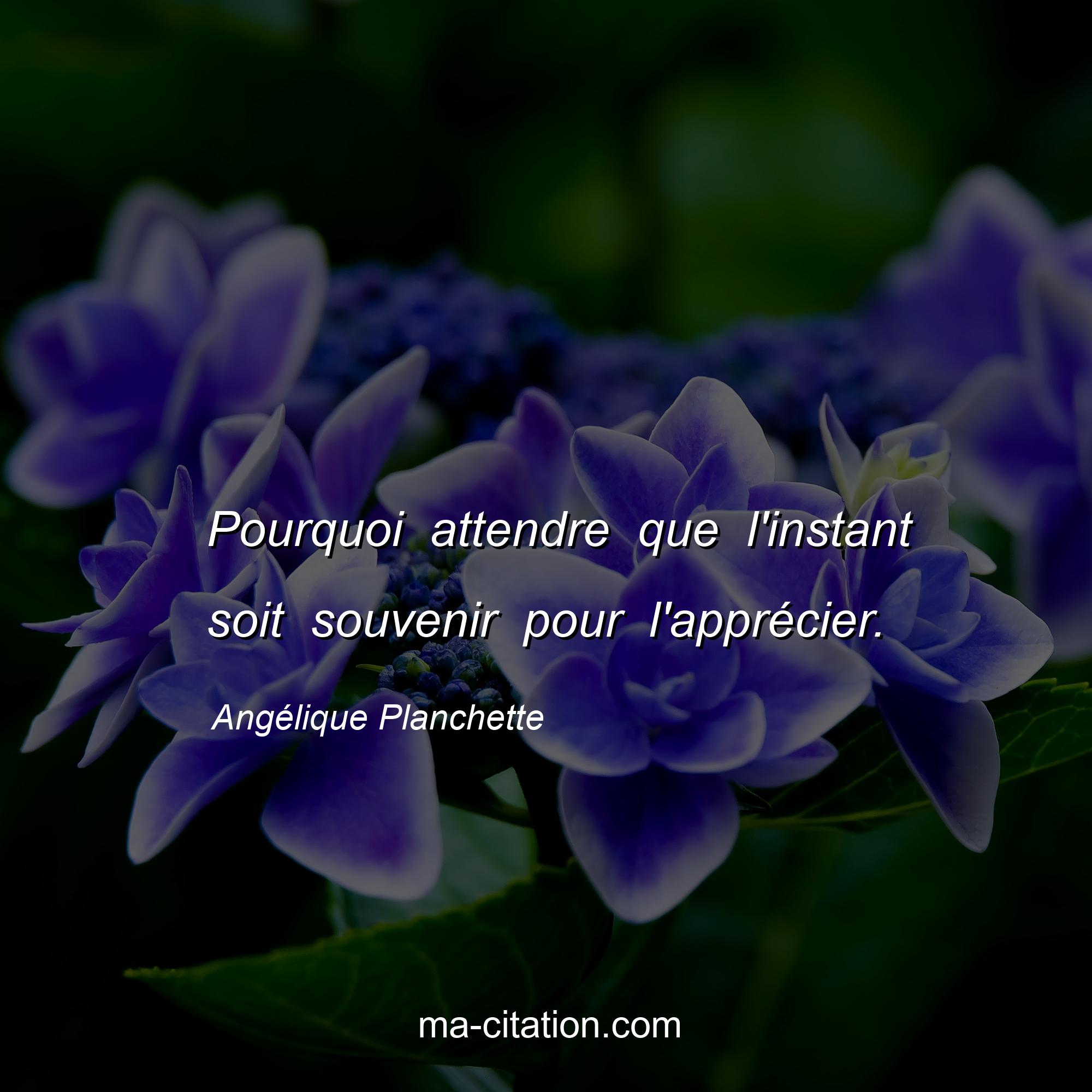 Angélique Planchette est l'auteur de la citation sur la vie "Pourquoi attendre que l'instant soit souvenir pour l'apprécier.".