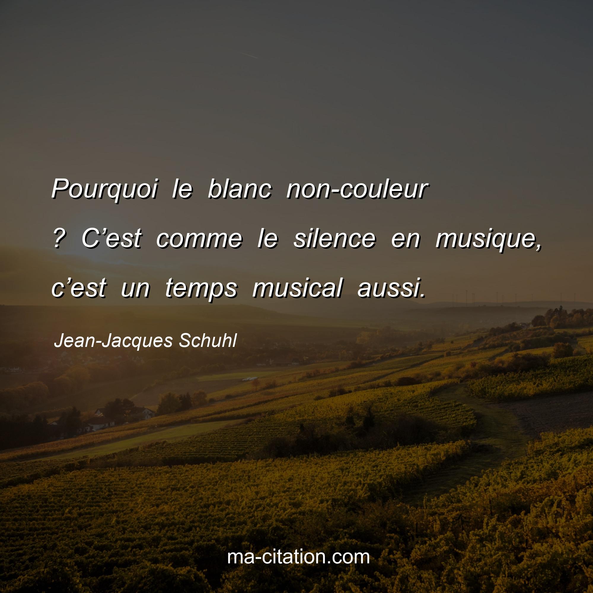 Citation sur la vie de Jean-Jacques Schuhl :Pourquoi le blanc non-couleur ? C’est comme le silence en musique, c’est un temps musical aussi.