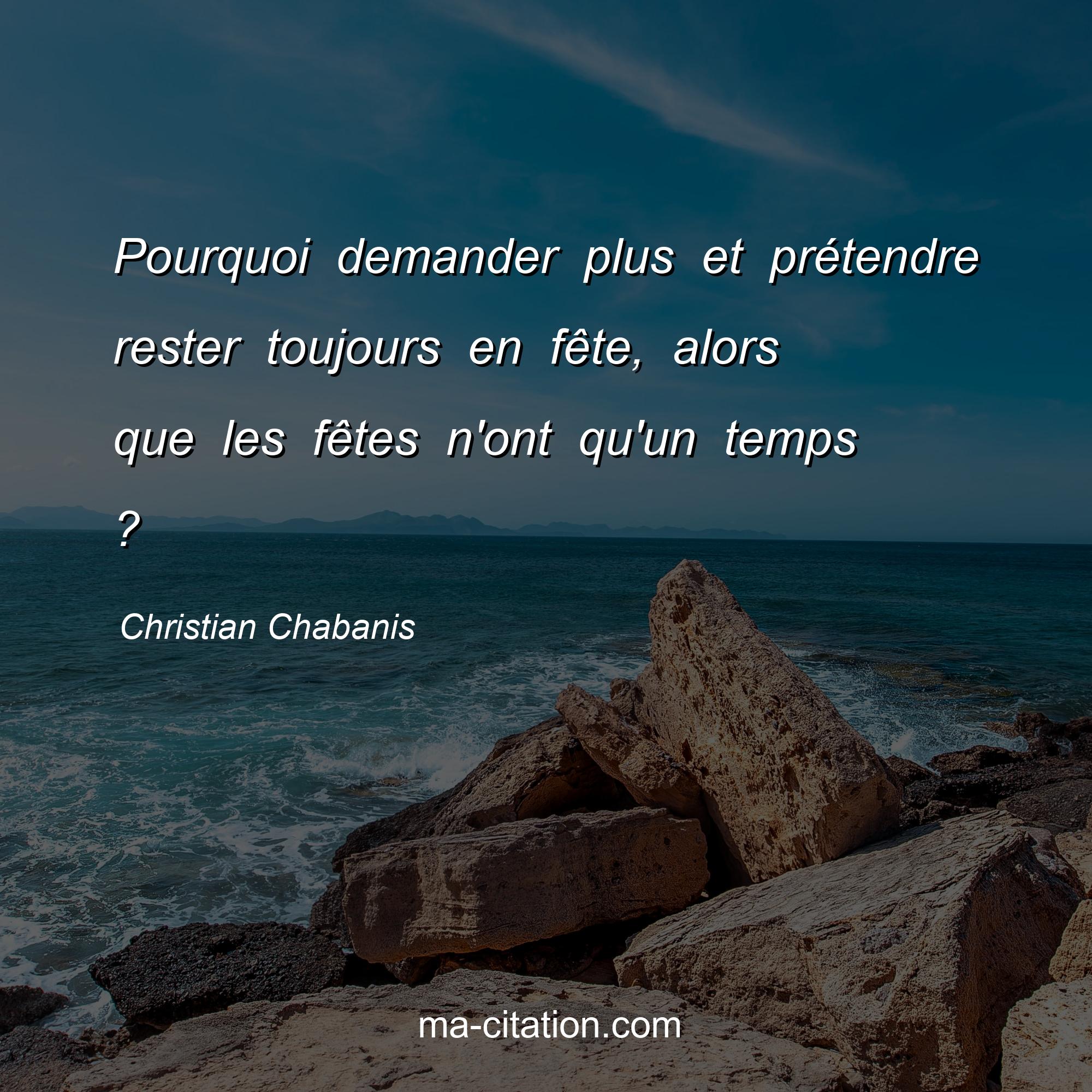 Christian Chabanis est l'auteur de la citation sur la vie "Pourquoi demander plus et prétendre rester toujours en fête, alors que les fêtes n'ont qu'un temps ?".