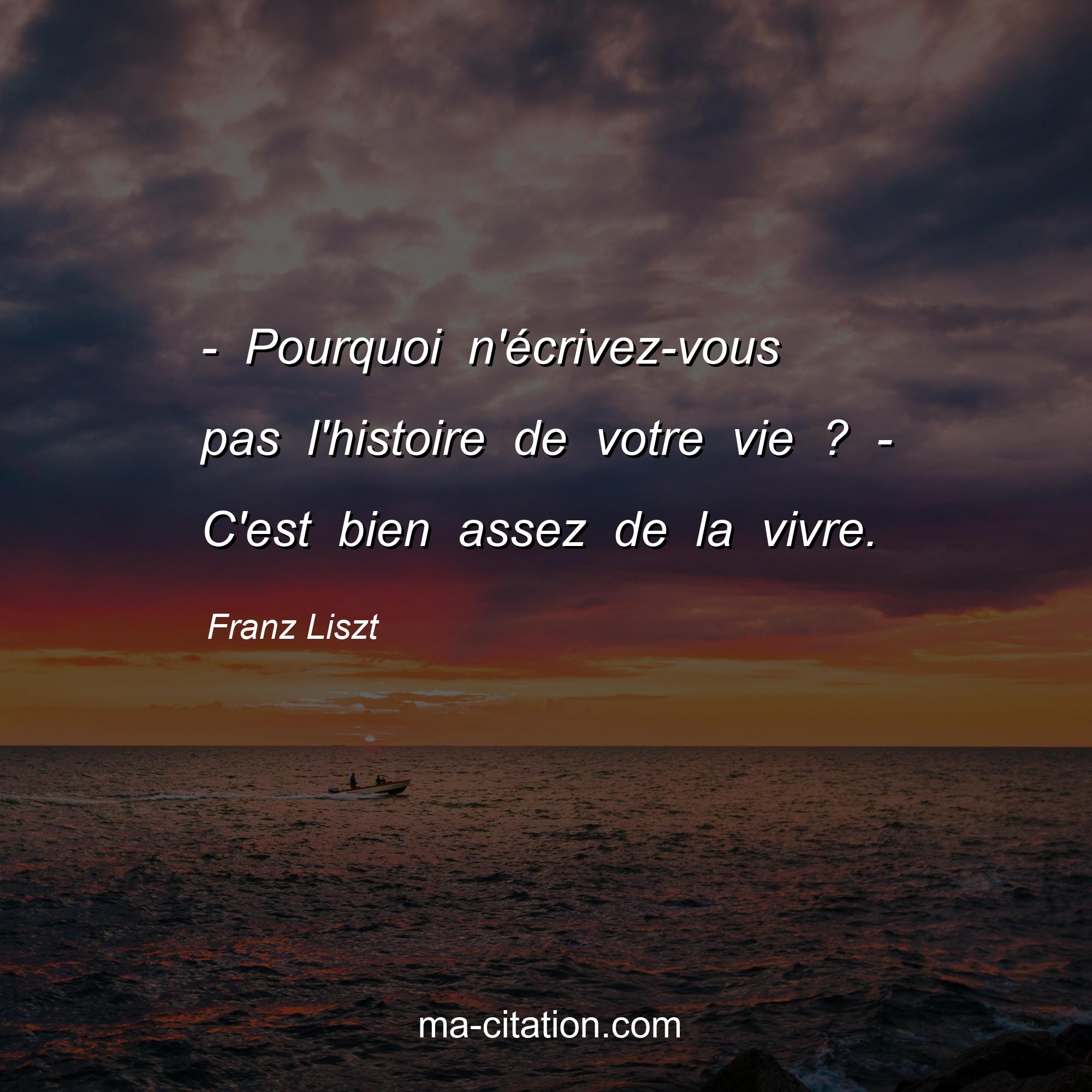 Citation sur la vie de Franz Liszt :- Pourquoi n'écrivez-vous pas l'histoire de votre vie ? - C'est bien assez de la vivre.