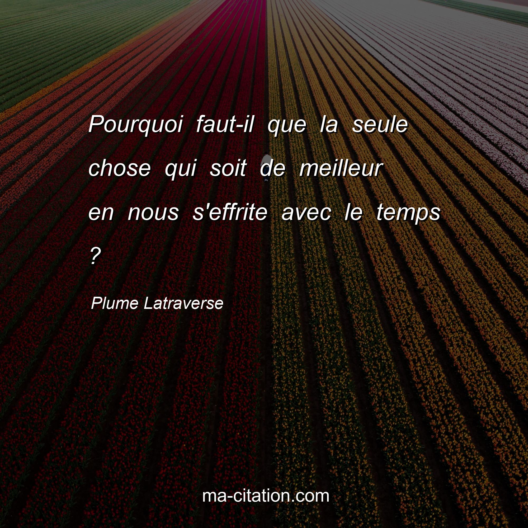 Plume Latraverse est l'auteur de la citation sur la vie "Pourquoi faut-il que la seule chose qui soit de meilleur en nous s'effrite avec le temps ?".