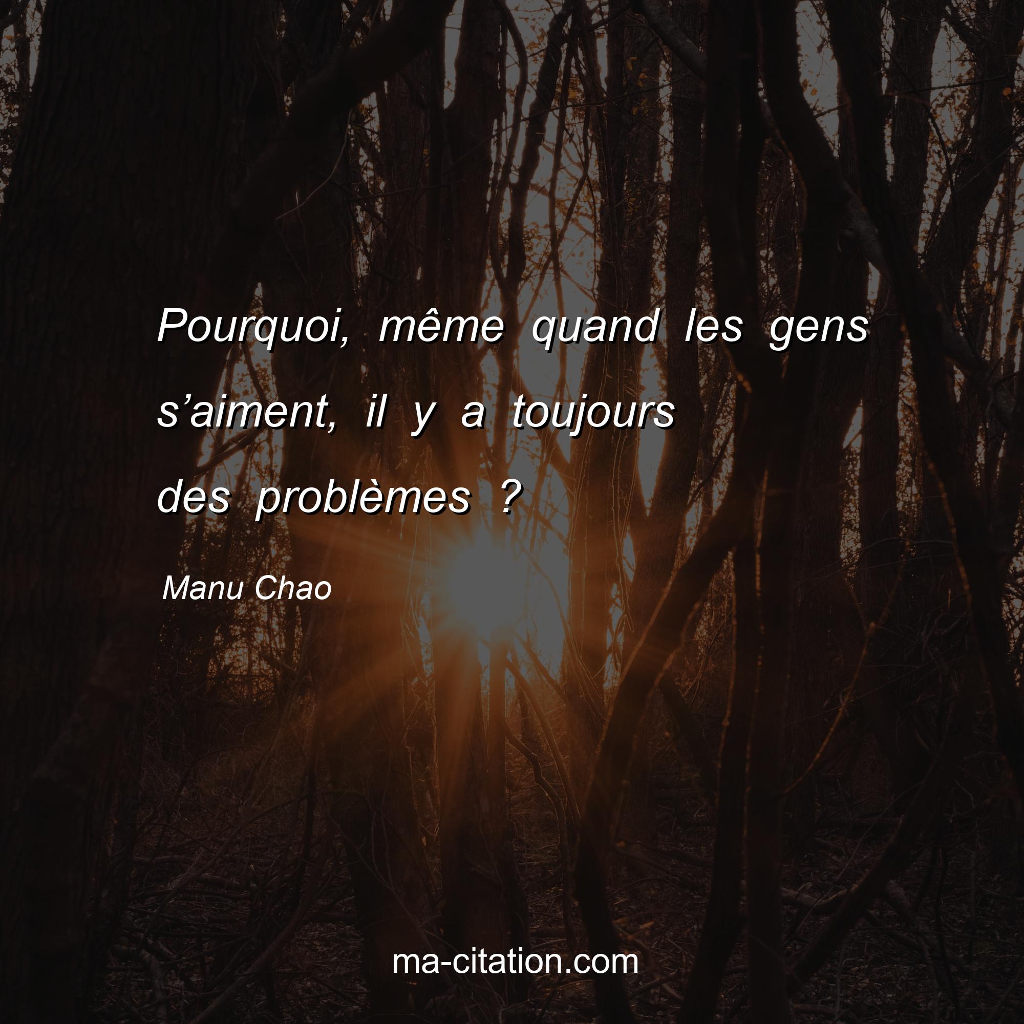 Citation sur la vie de Manu Chao :Pourquoi, même quand les gens s’aiment, il y a toujours des problèmes ?