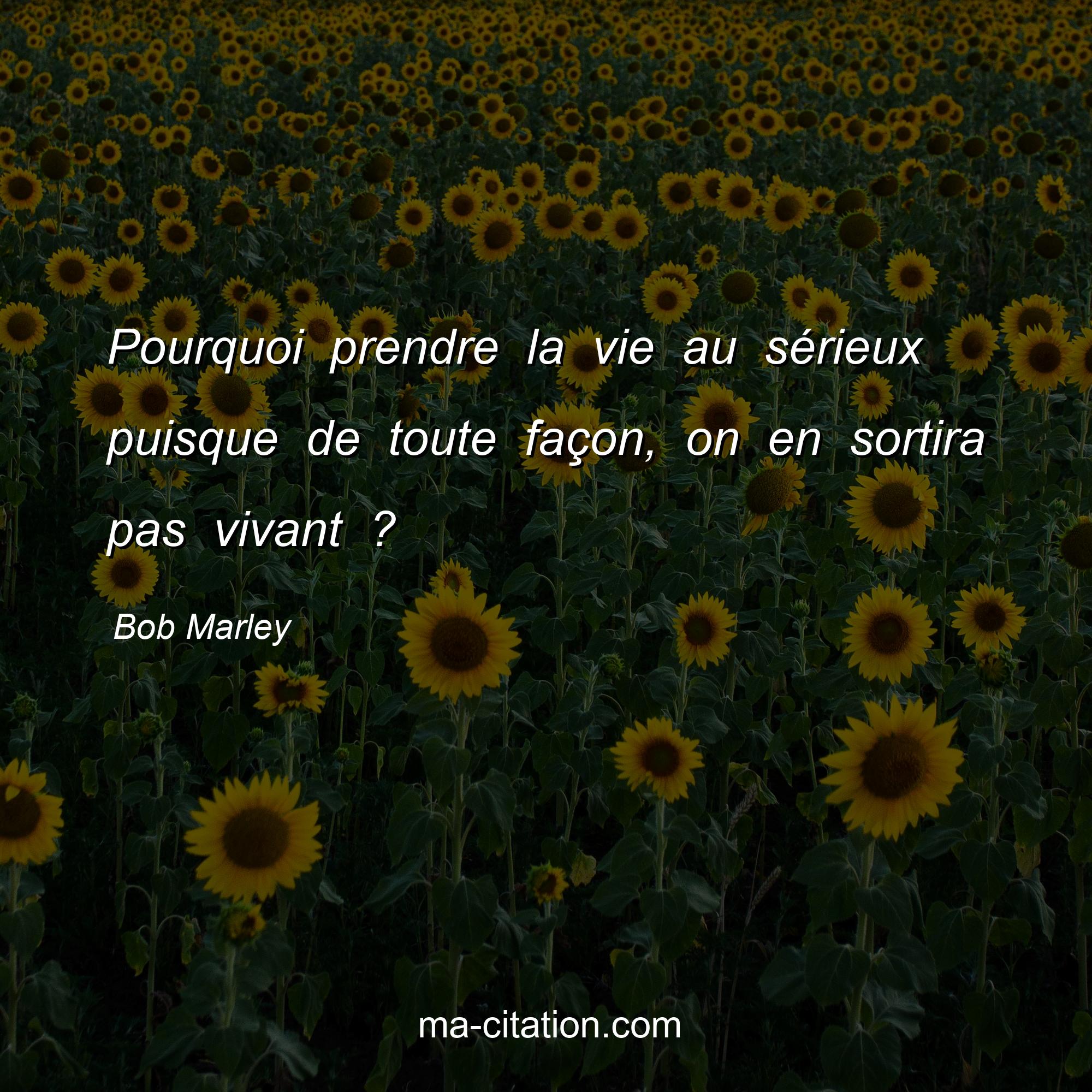 Bob Marley est l'auteur de la citation sur la vie "Pourquoi prendre la vie au sérieux puisque de toute façon, on en sortira pas vivant ?".
