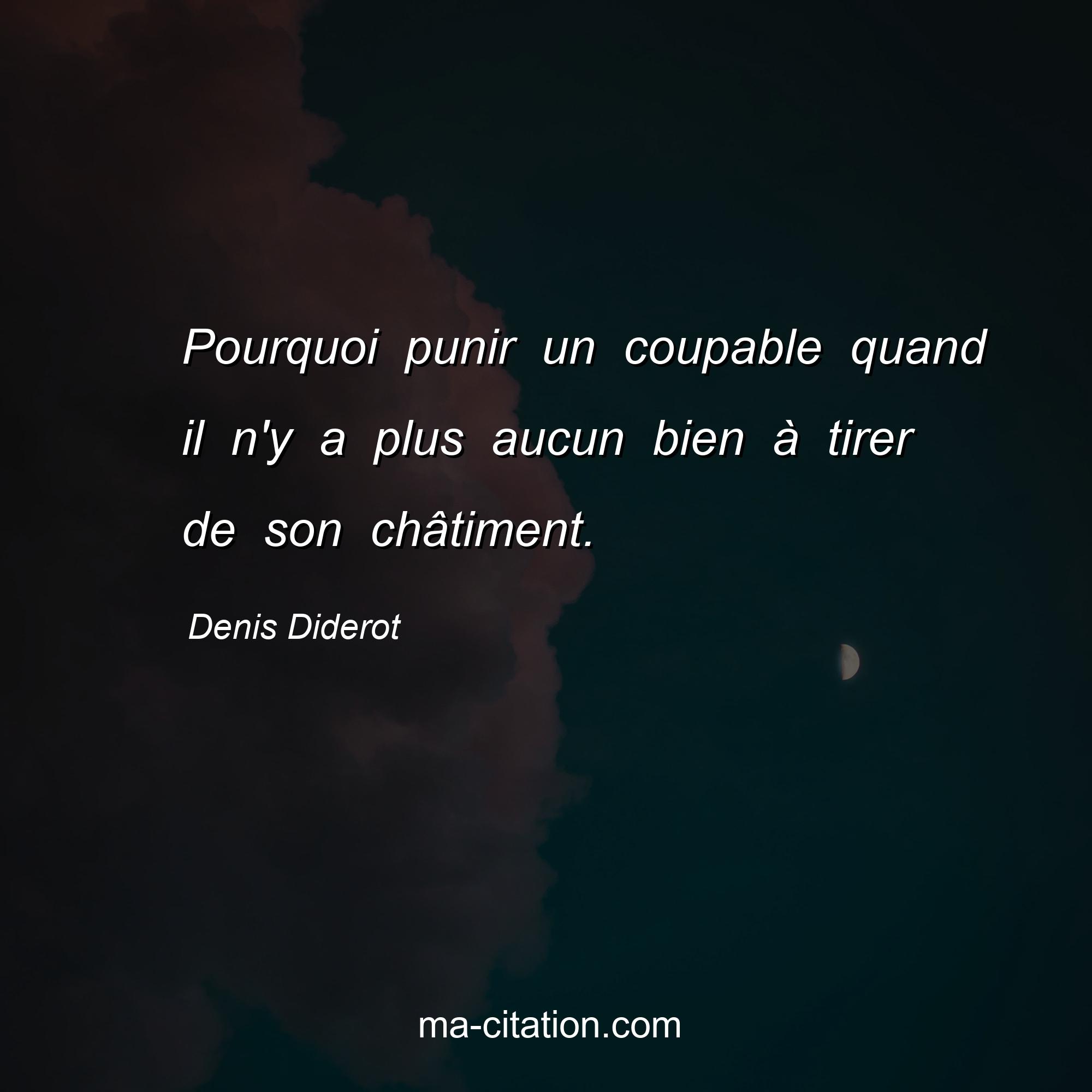 Citation sur la vie de Denis Diderot :Pourquoi punir un coupable quand il n'y a plus aucun bien à tirer de son châtiment.