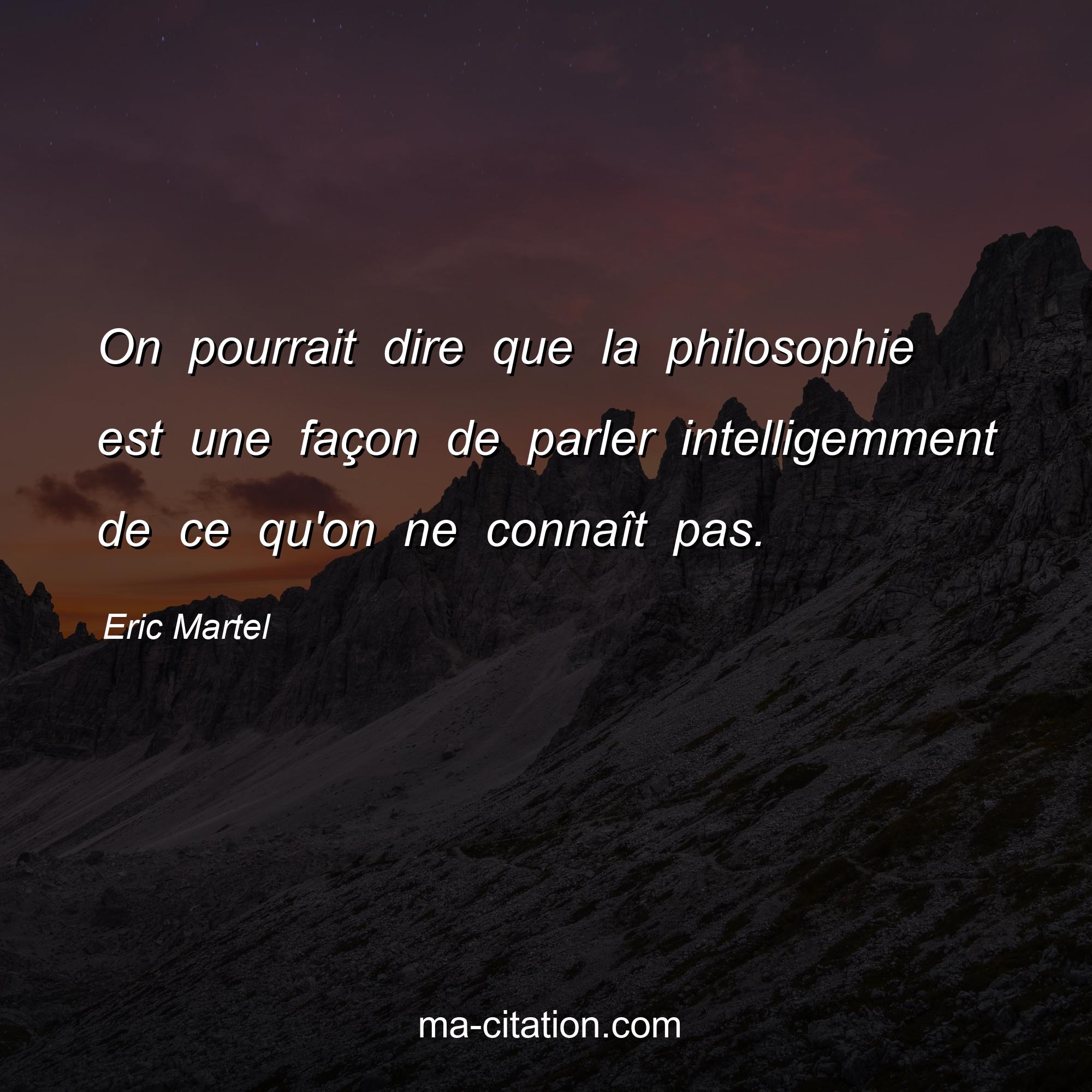 Citation sur la vie d'Eric Martel :On pourrait dire que la philosophie est une façon de parler intelligemment de ce qu'on ne connaît pas.