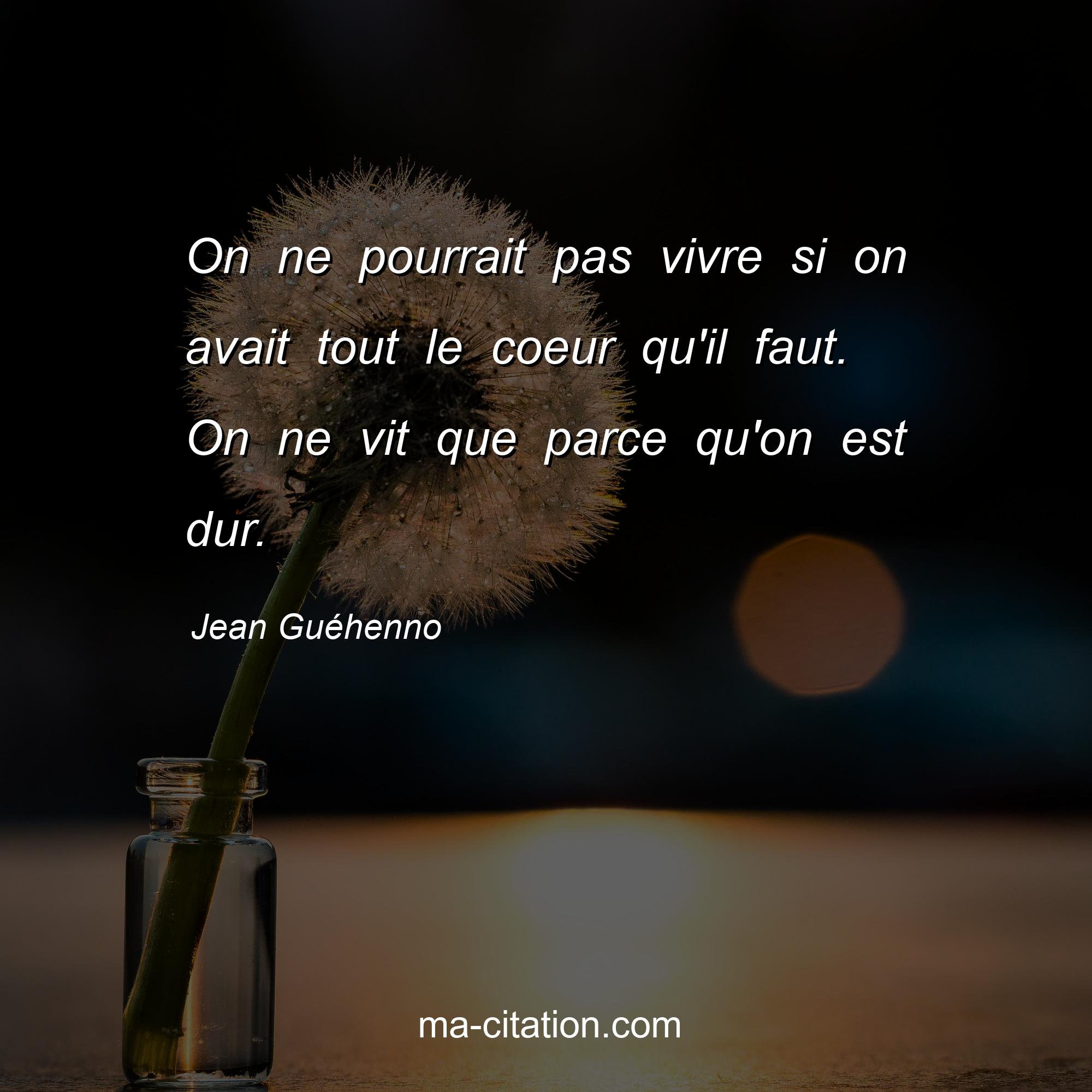 Citation sur la vie de Jean Guéhenno :On ne pourrait pas vivre si on avait tout le coeur qu'il faut. On ne vit que parce qu'on est dur.