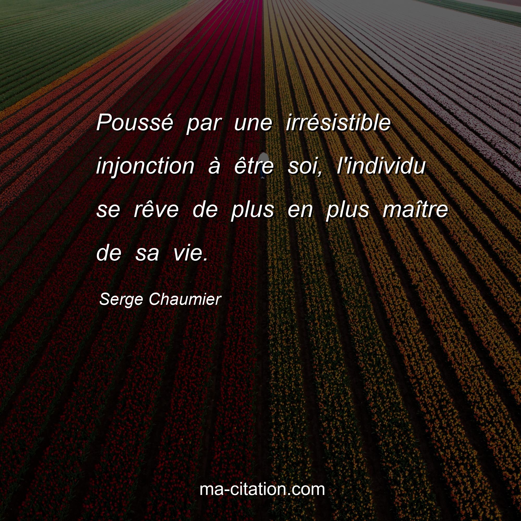 Citation sur la vie de Serge Chaumier :Poussé par une irrésistible injonction à être soi, l'individu se rêve de plus en plus maître de sa vie.