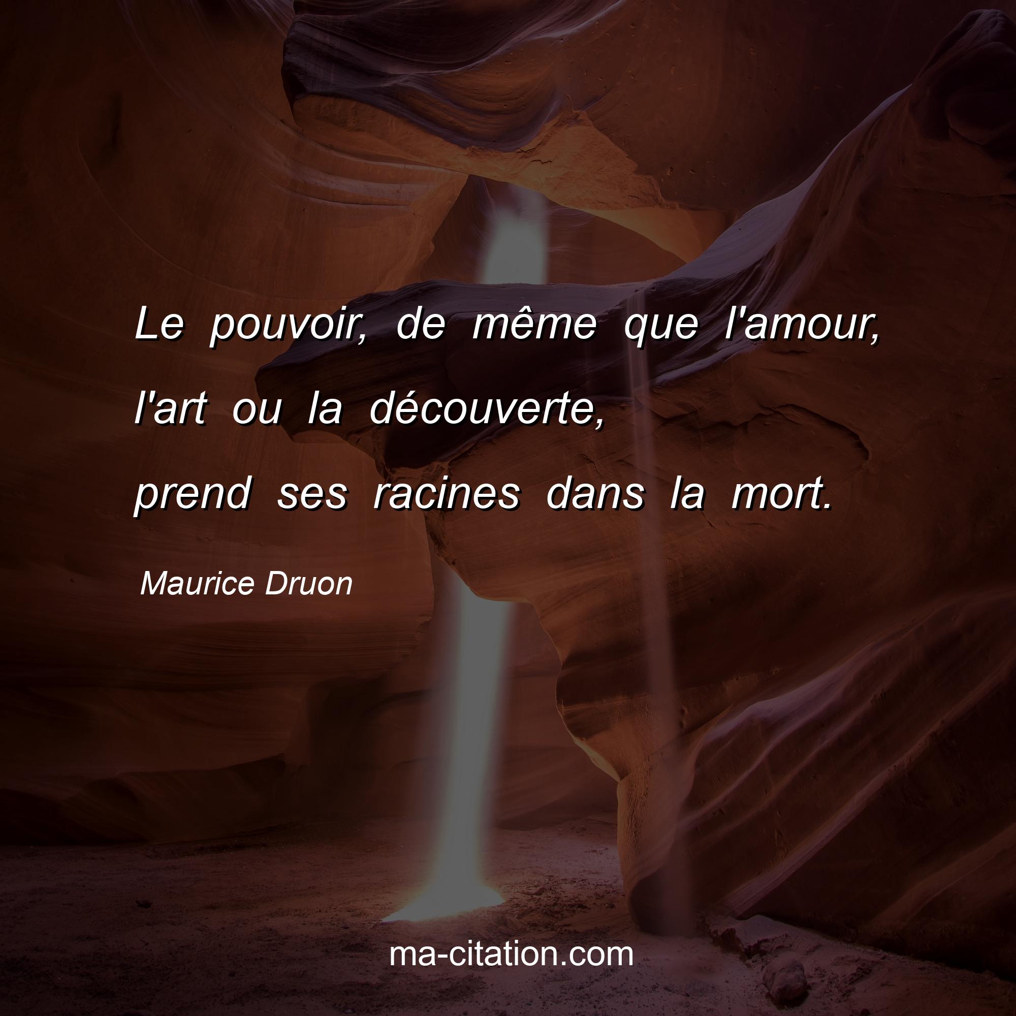 Citation sur la vie de Maurice Druon :Le pouvoir, de même que l'amour, l'art ou la découverte, prend ses racines dans la mort.