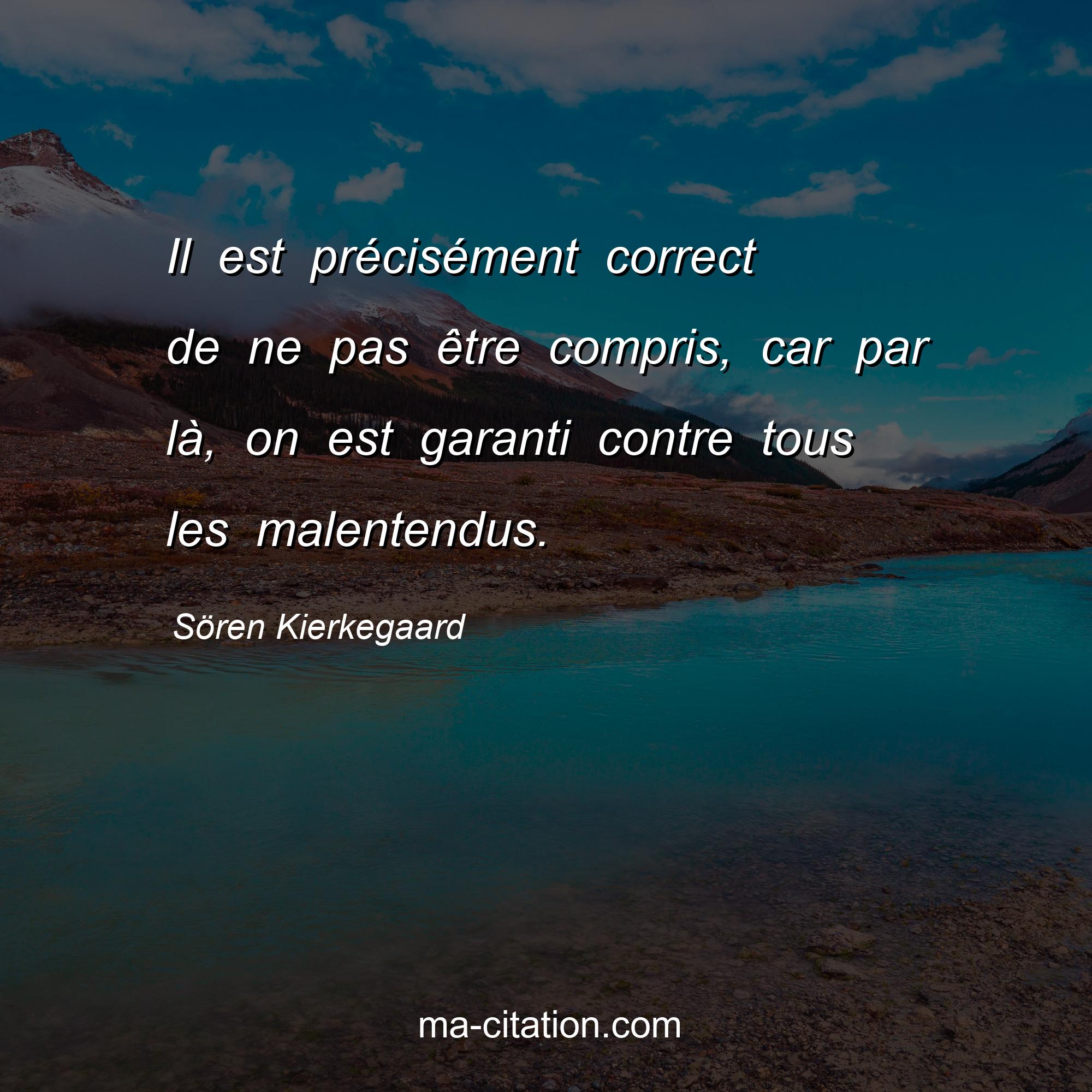 Citation sur la vie de Sören Kierkegaard :Il est précisément correct de ne pas être compris, car par là , on est garanti contre tous les malentendus.