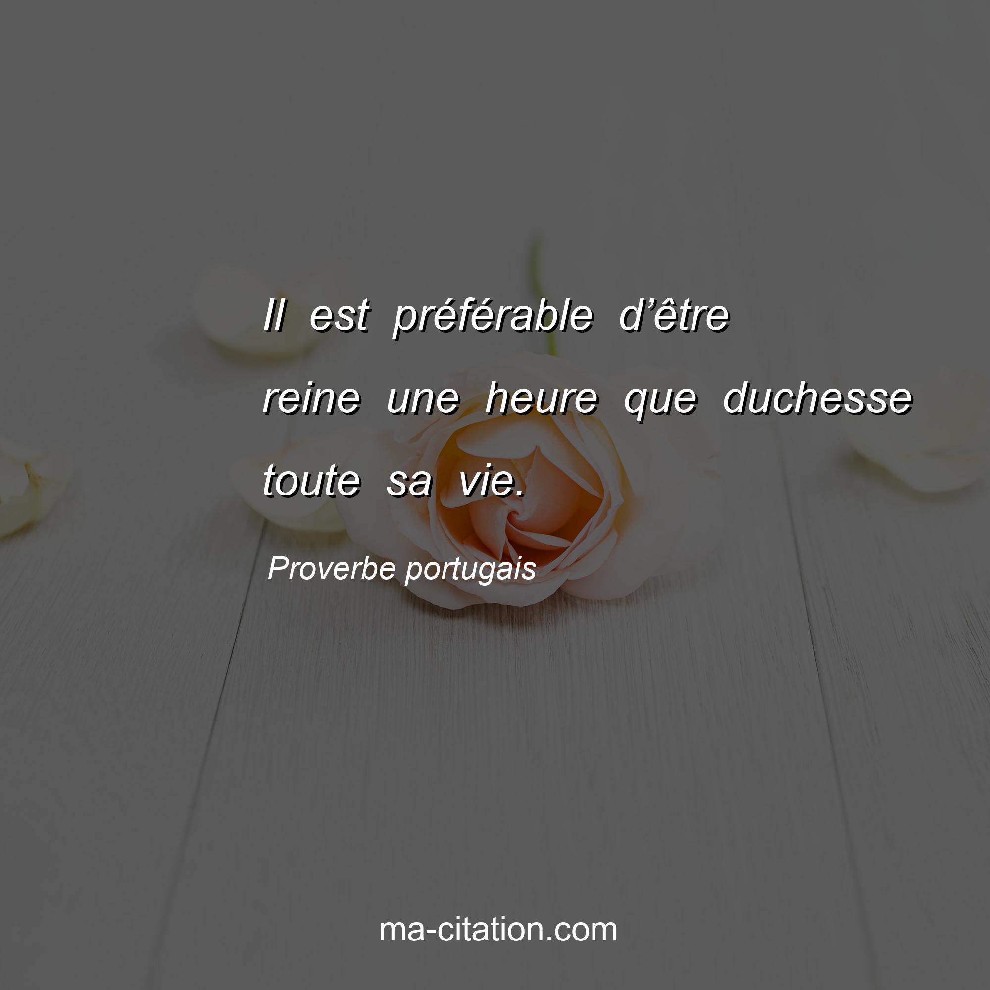 Proverbe portugais sur la vie :Il est préférable d’être reine une heure que duchesse toute sa vie.
