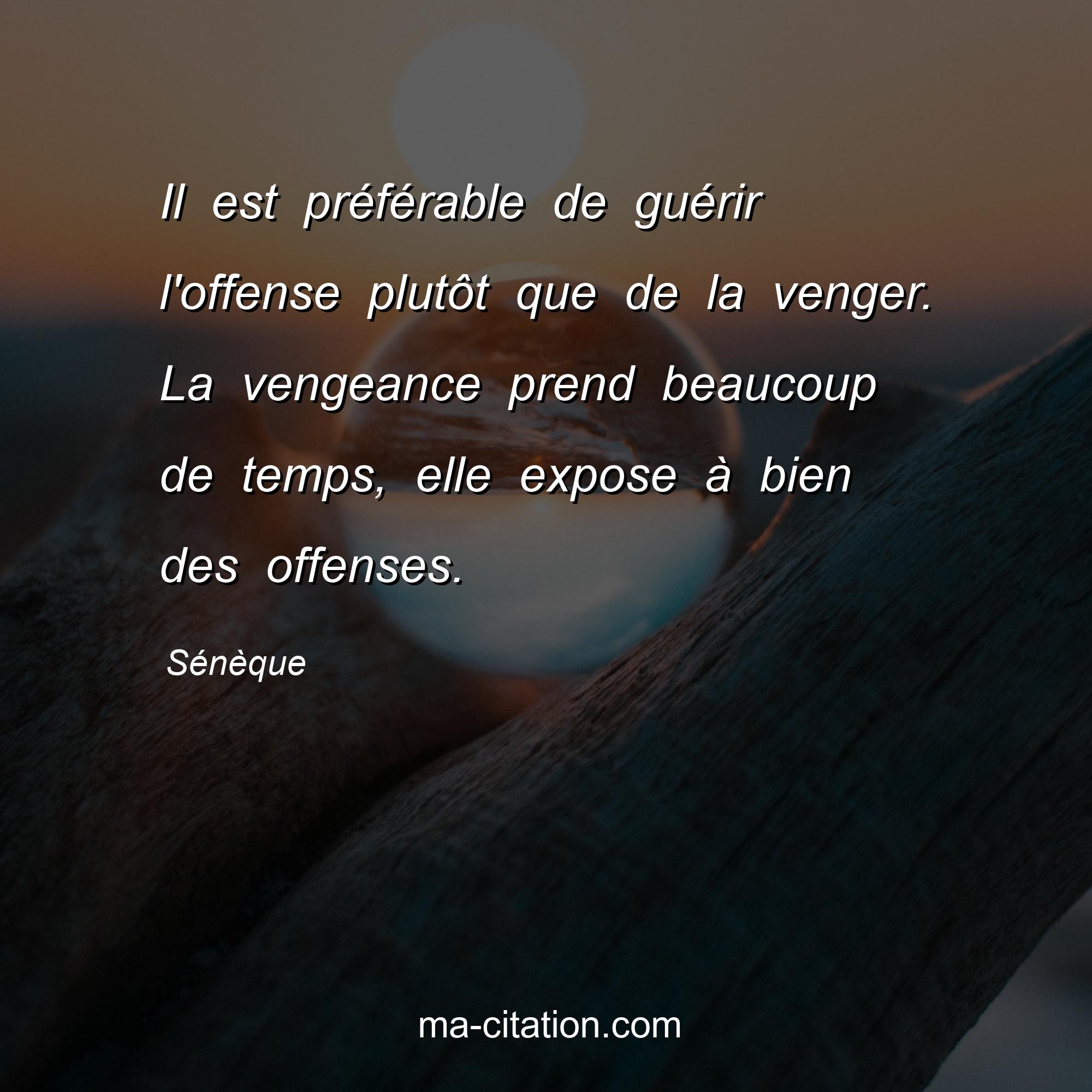 Citation sur la vie de Sénèque :Il est préférable de guérir l'offense plutôt que de la venger. La vengeance prend beaucoup de temps, elle expose à bien des offenses.