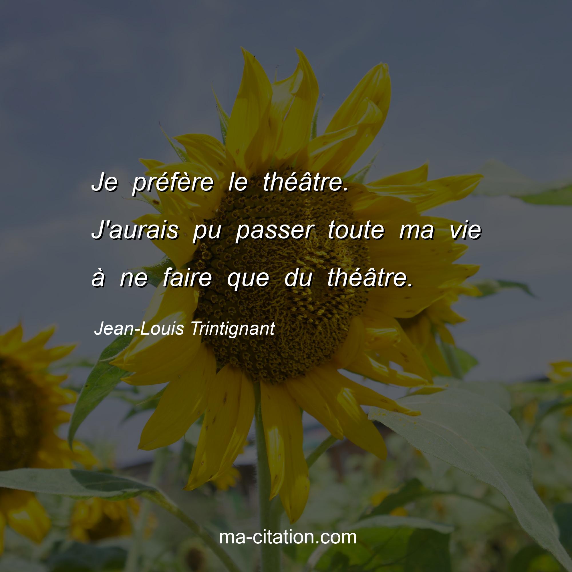 Citation sur la vie de Jean-Louis Trintignant :Je préfère le théâtre. J'aurais pu passer toute ma vie à ne faire que du théâtre.