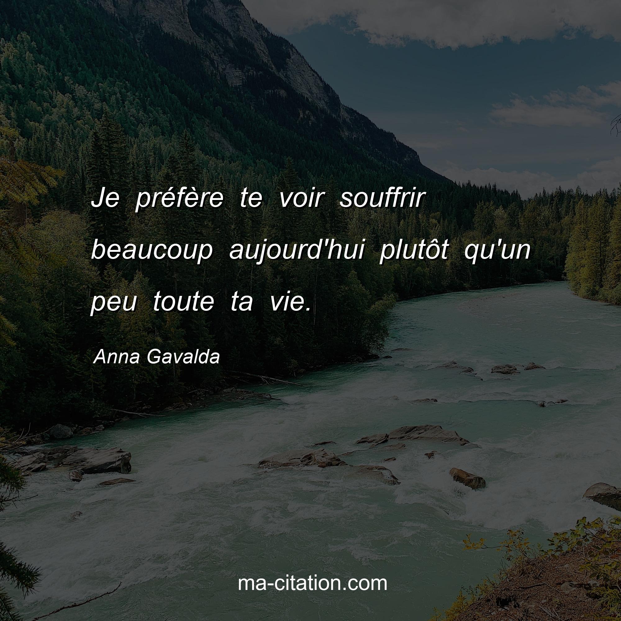 Anna Gavalda est l'auteur de la citation sur la vie "Je préfère te voir souffrir beaucoup aujourd'hui plutôt qu'un peu toute ta vie.".