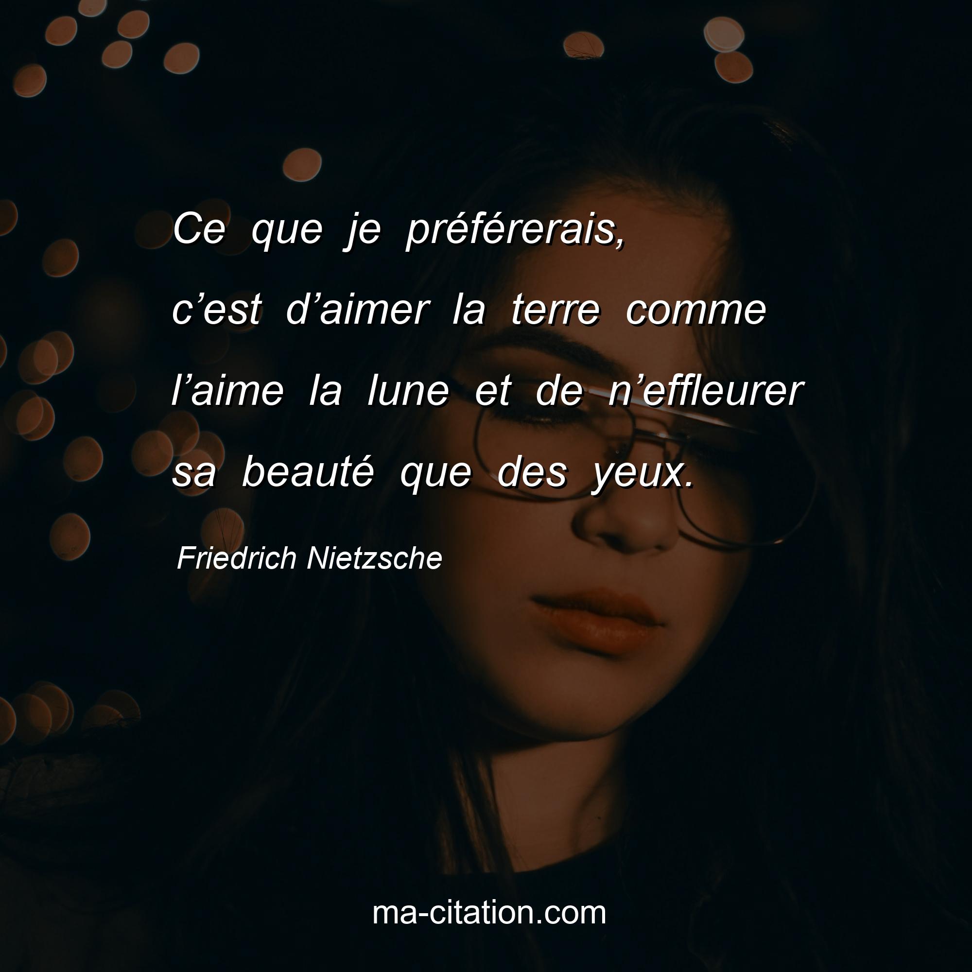 Citation sur la vie de Friedrich Nietzsche :Ce que je préférerais, c’est d’aimer la terre comme l’aime la lune et de n’effleurer sa beauté que des yeux.