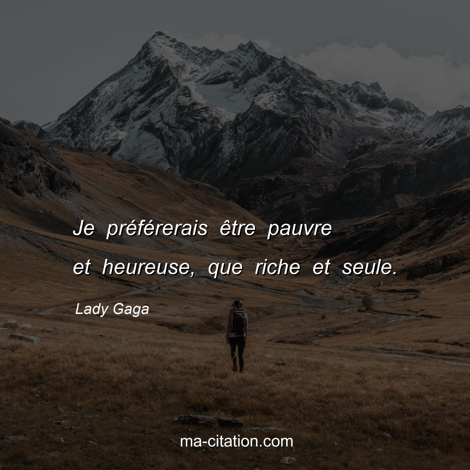 Lady Gaga est l'auteur de la citation sur la vie "Je préférerais être pauvre et heureuse, que riche et seule.".
