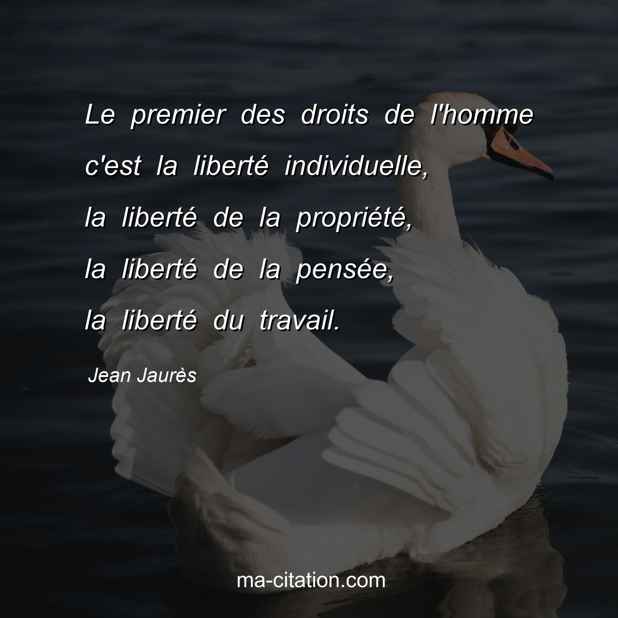 Citation sur la vie de Jean Jaurès :Le premier des droits de l'homme c'est la liberté individuelle, la liberté de la propriété, la liberté de la pensée, la liberté du travail.