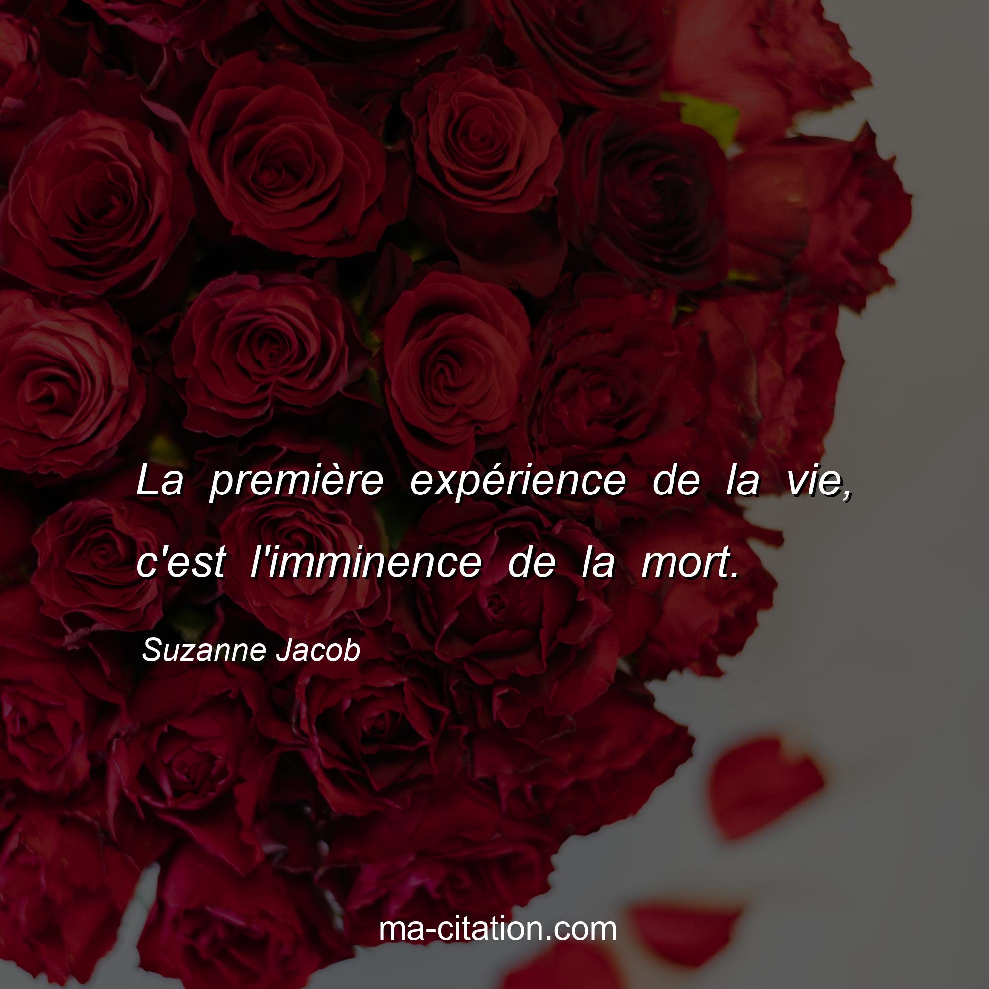 Citation sur la vie de Suzanne Jacob :La première expérience de la vie, c'est l'imminence de la mort.