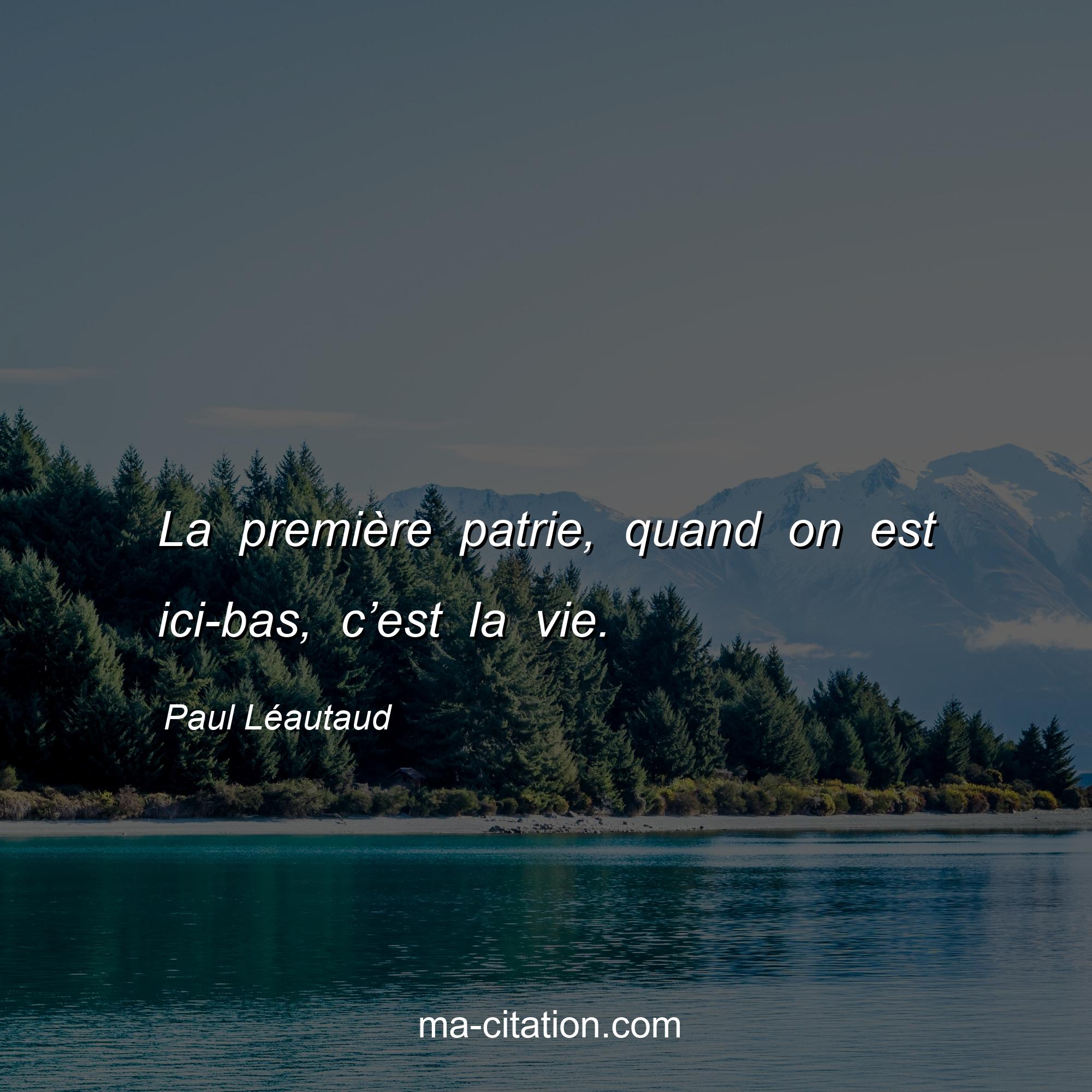 La première patrie, quand on est ici-bas, c’est la vie.