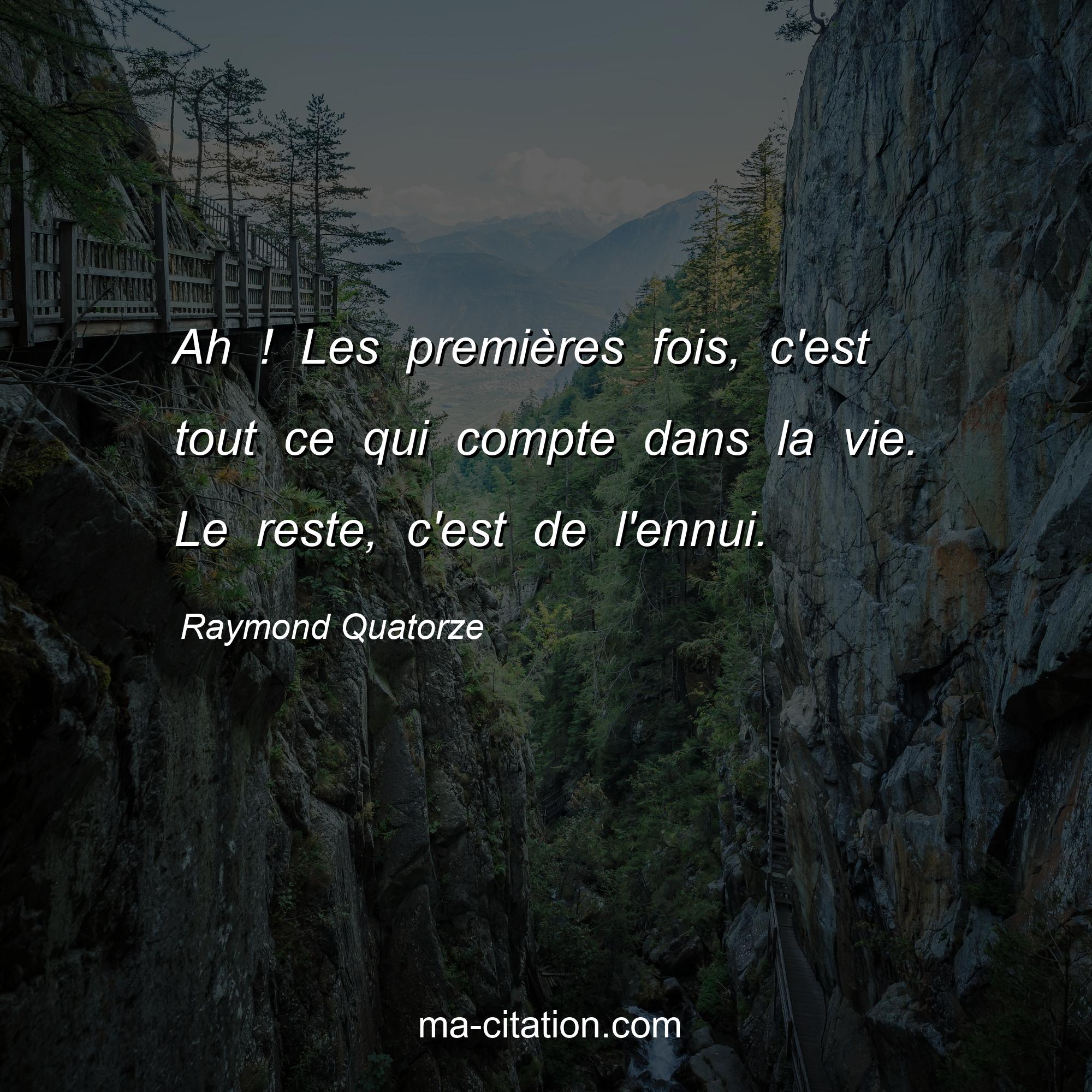 Raymond Quatorze est l'auteur de la citation sur la vie "Ah ! Les premières fois, c'est tout ce qui compte dans la vie. Le reste, c'est de l'ennui.".
