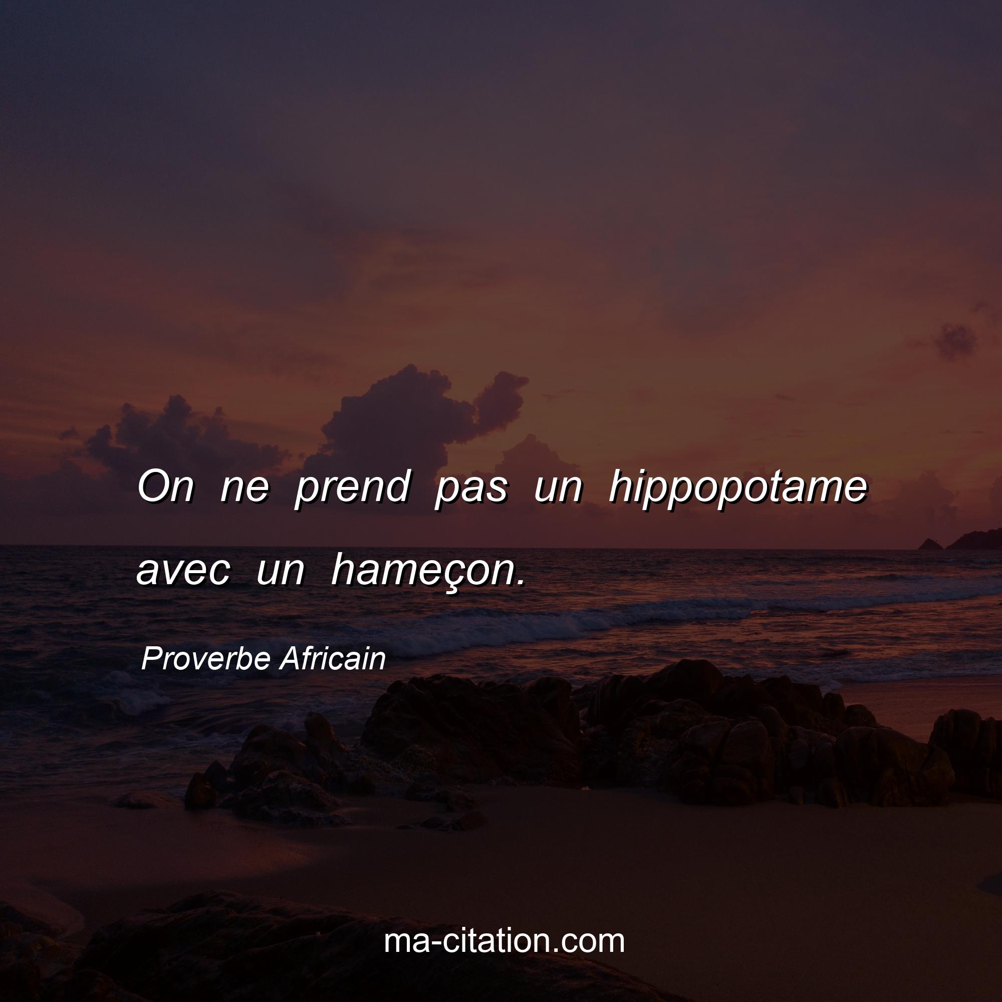 On ne prend pas un hippopotame avec un hameçon.
