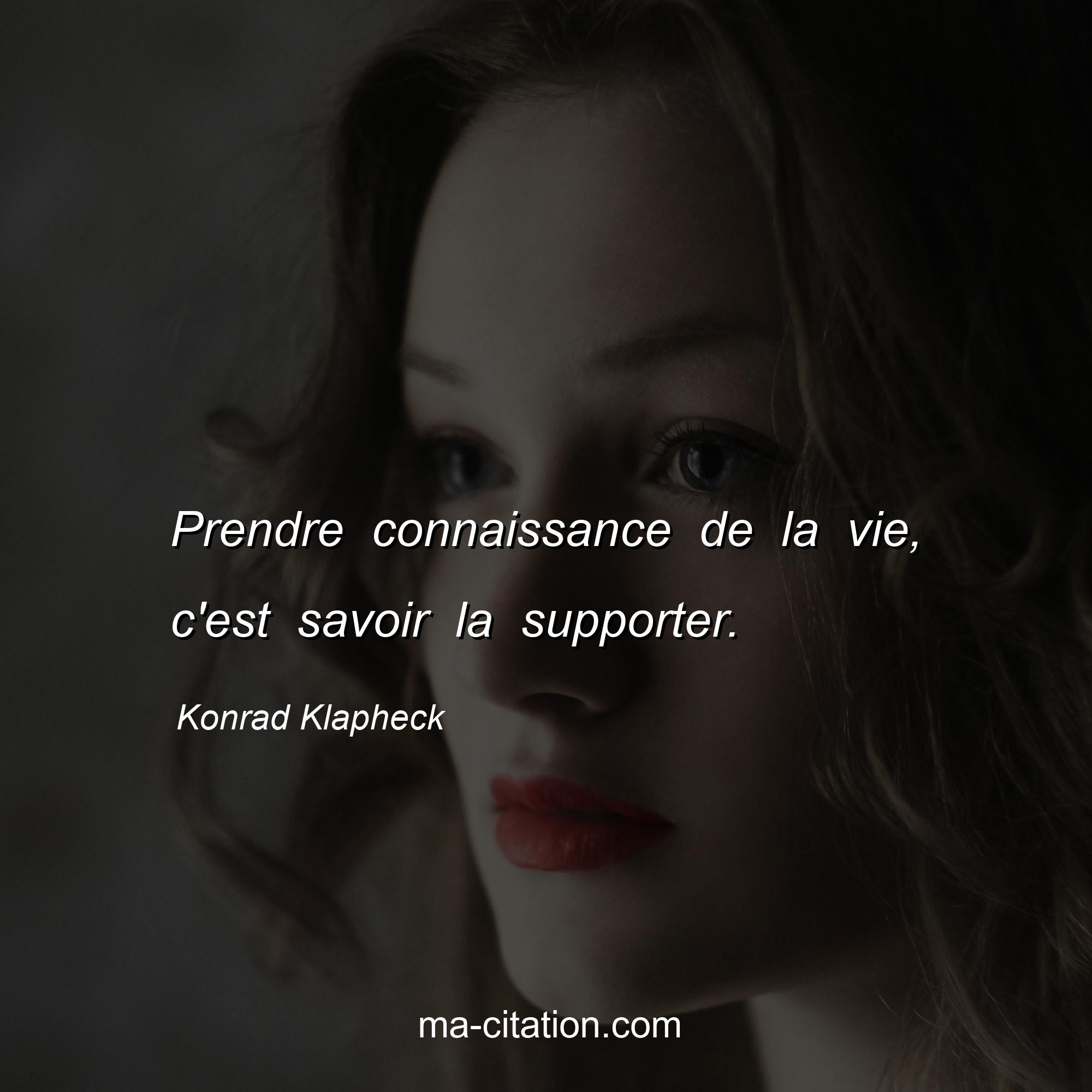 Prendre connaissance de la vie, c'est savoir la supporter.