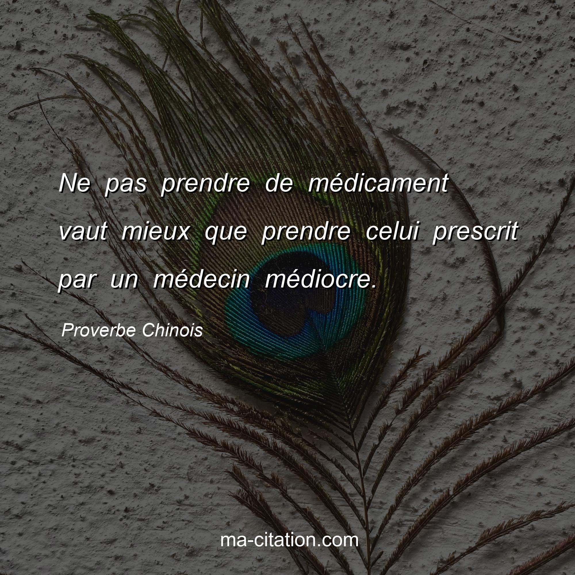 Proverbe Chinois sur la vie :Ne pas prendre de médicament vaut mieux que prendre celui prescrit par un médecin médiocre.